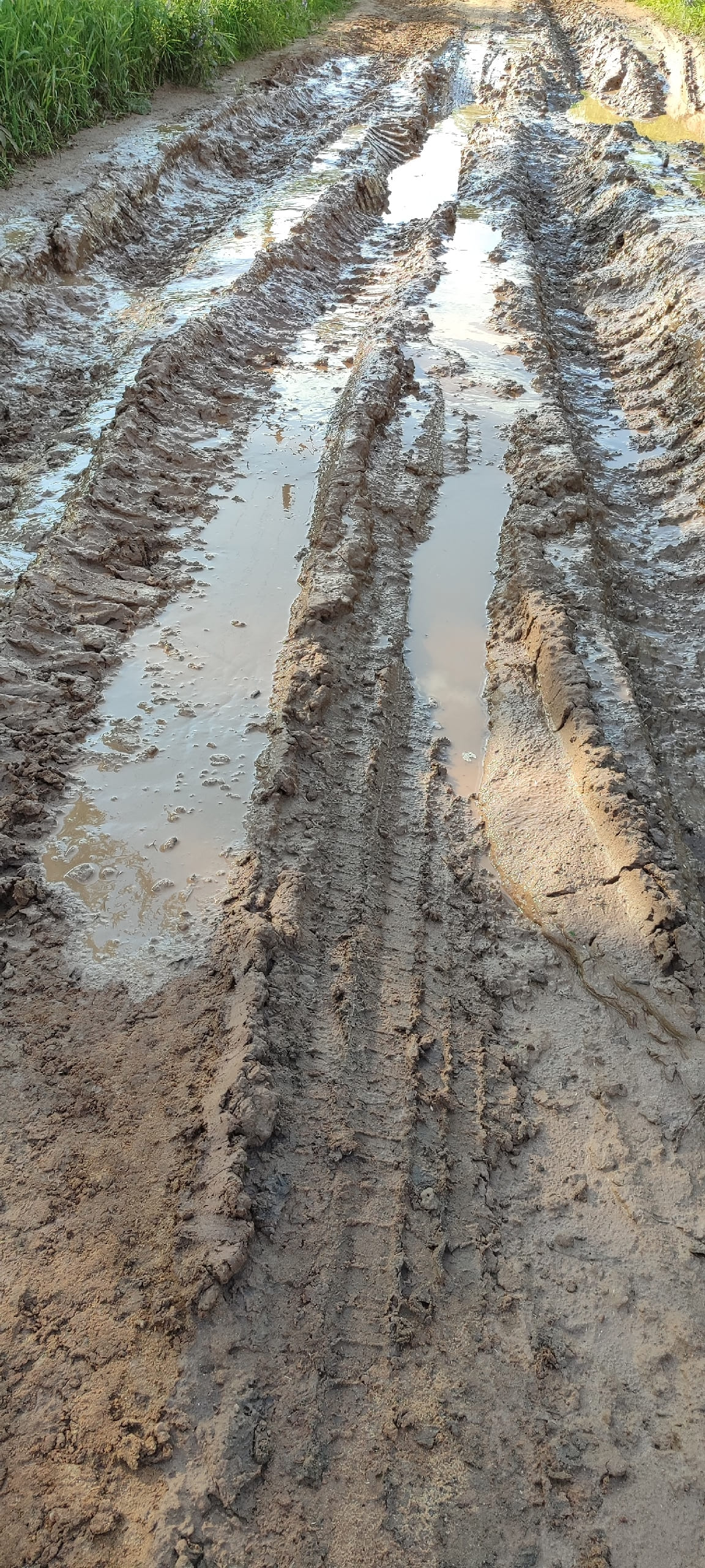 С прошлого года, как рассказали очевидцы, обещали грейдер, но по сей день его нет. Дорога глиняная и после каждого малейшего дождя ее размывает, что не пройти, не говоря уже о транспорте. Возят лес огромные груженные машины по этой дороге, тем самым ее добивая.