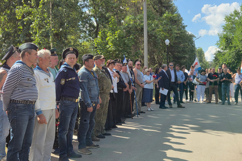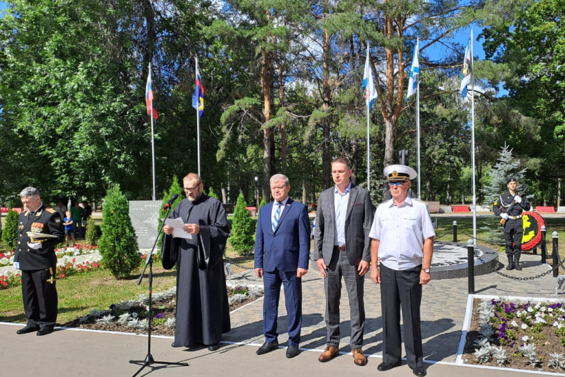 В парке Победы у памятника воина-морякам собрались представители власти, военные, горожане.