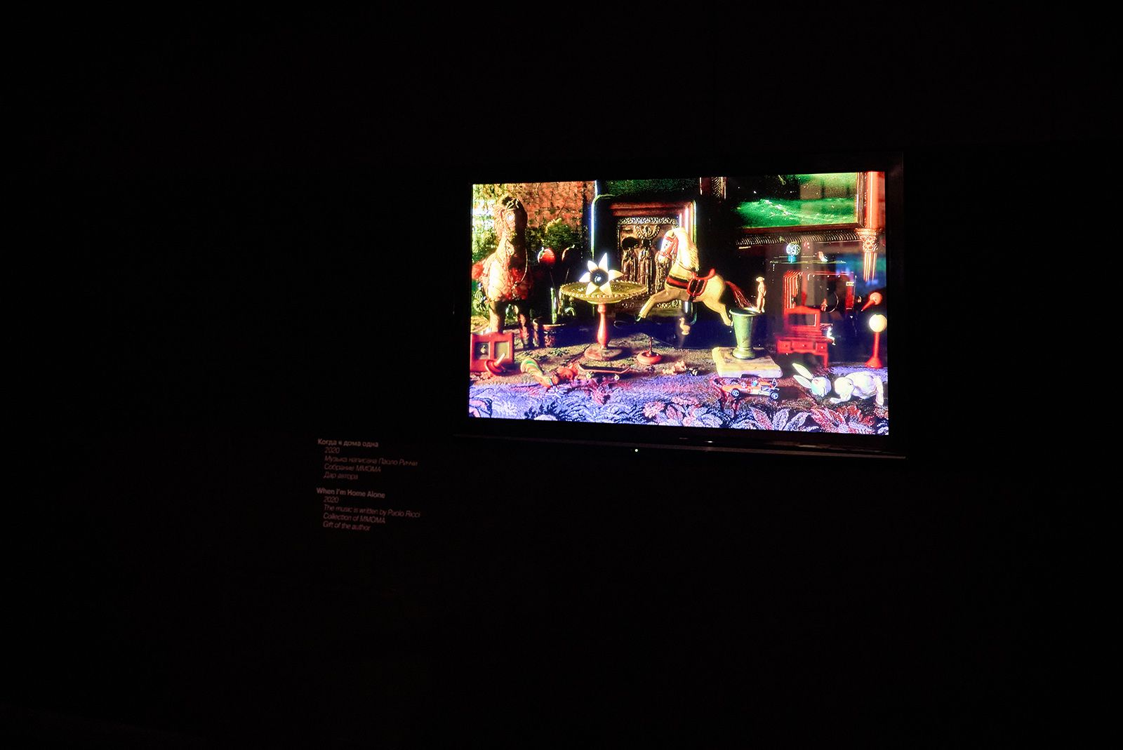 «Конечно же, память — не просто какие-то вещицы, это и запахи, и звуки, и еда, тактильные ощущения и многое другое, — продолжает Александра Митлянская. — Предметы из видеосюжетов не подбирались специально, они в течение многих лет сами собой собрались на комоде: какие-то из детства, что-то куплено на блошиных рынках, что-то досталось по наследству, что-то подарили. И в какой-то момент мне захотелось все это оживить. Было понятно, что предстоит огромная работа, это займет много времени, что нужно, чтобы никто в комнату с комодом не заходил целыми днями, и я откладывала эту затею. Но случился ковид, и время изоляции прошло незаметно, так как мне было чем заняться. Дальше пришла идея продолжить эту работу и сделать сюжеты с двумя-тремя персонажами. Проект “Когда я дома одна” не только про память, а еще и про то, что окружающие нас вещи, стоит отвернуться, начинают жить своей жизнью. Это, наверное, в большей степени ощущение, свойственное детям, но меня оно до сих пор не покинуло. Причем то, что в детстве могло происходить в воображении, не всегда было милым и чудесным, оно могло быть страшным и ужасным. Помните страшные истории про черную перчатку, желтые качели и женский портрет в новой квартире?»