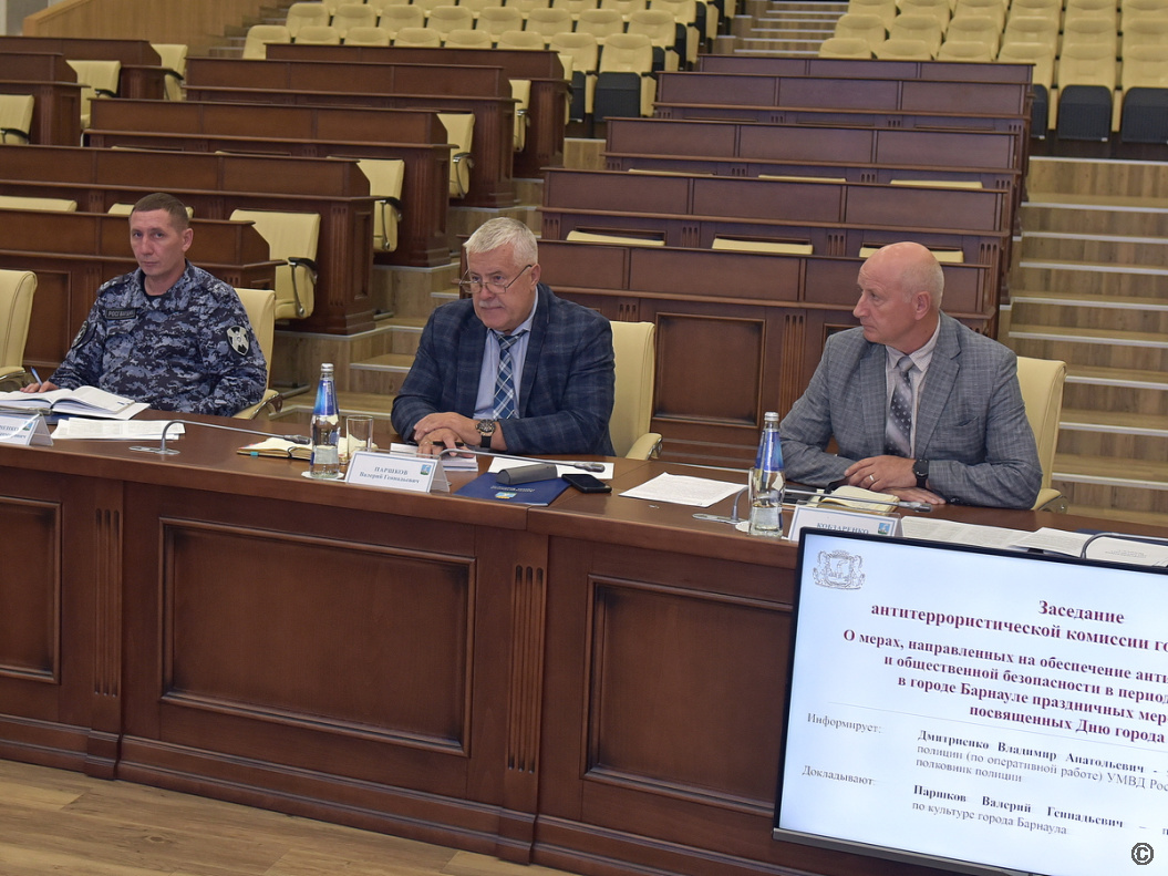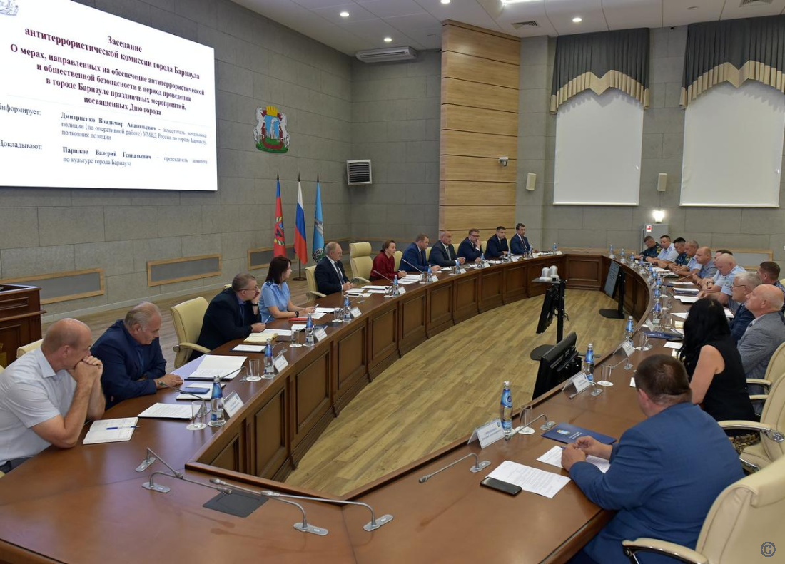 Заседание посвятили обсуждению мер по обеспечению антитеррористической и общественной безопасности в дни проведения праздничных мероприятий, приуроченных к 295-й годовщине основания Барнаула.