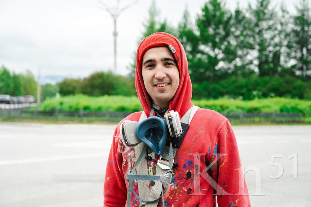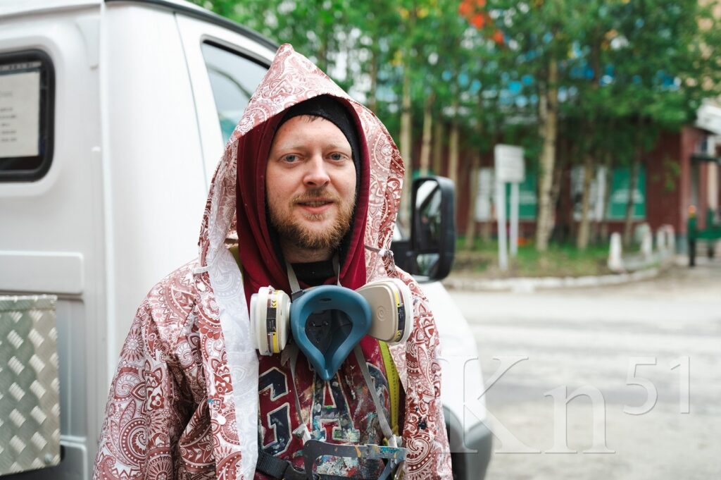 — Обычно для этих целей применяется проектор, изображение переносится ночью, в темноте. Но в Мончегорске сейчас светло, а значит высветить рисунок проектором невозможно. Использовали технологию с применением VR-очков, — рассказал Kn51 художник Василий Цветков.
