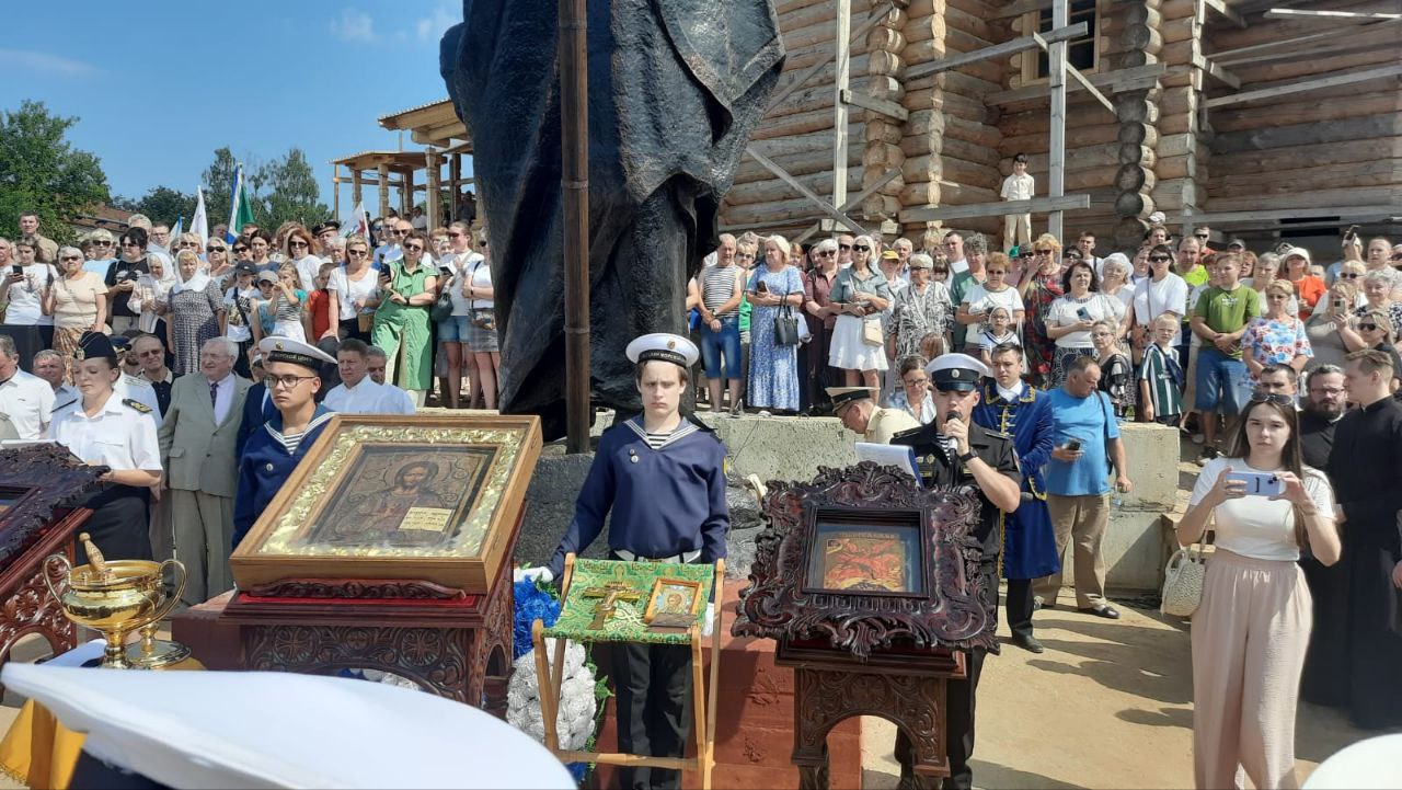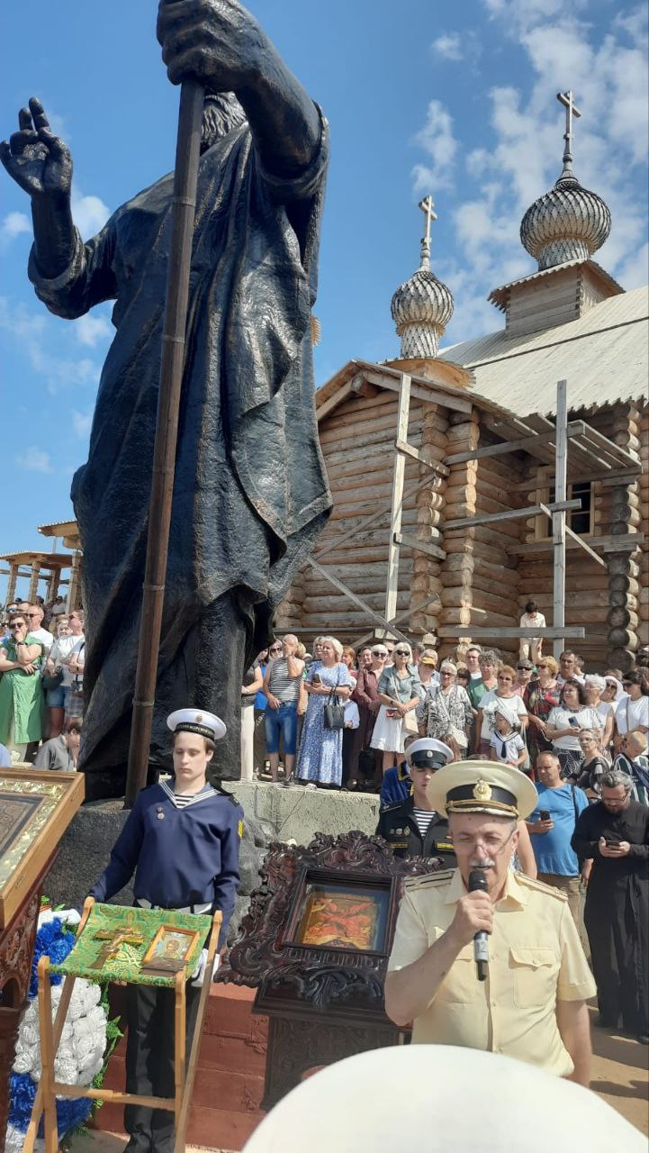 27 июля 2025 года в Костроме прошло празднование Дня Военно-морского флота. Его организатор, начальник отдела выставочно-ярмарочной деятельности Союза "Торгово-промышленная палата Костромской области", по совместительству председатель Костромского морского собрания, капитан второго ранга Андрей Владимирович Шатунов, выступил на торжественном мероприятии рядом с возрождённым "морским" храмом (церковь Рождества Богородицы) на берегу реки Волга у скульптурного изображения Апостола Андрея Первозванного, покровителя моряков.