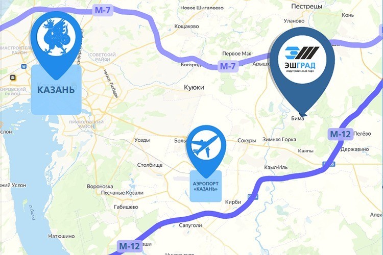 Идеальным местоположением завлекал инвесторов будущий промпарк «Эшград». Прежде о проекте не сообщалось. Территория в сердце района, в 28 км от центра Казани и в 15 км от казанского аэропорта, рядом трассы М7 и М12, расписывала руководитель промпарка Венера Усманова.