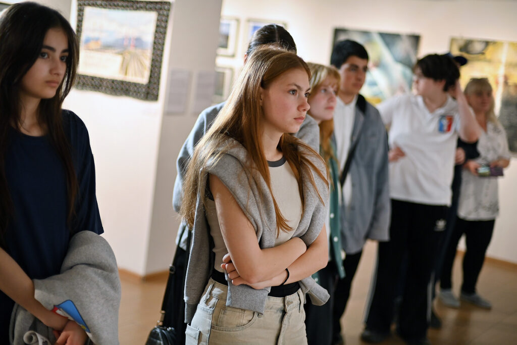 Ребятам повезло на закрытии сезона ТОШ-2025 попасть на выставку, о которой, по их словам, они еще долго будут помнить. И не только помнить, но и следить за проектами PolArt-резиденции. Выяснилось, что прежде никто из них даже не слышал о ее существовании в городе, хотя в галерее и музее дети бывают. Десятиклассница Даша Лебедева училась в Норильской детской художественной школе и на мастер-классах по живописи, которую любит. В галерее на этот раз ее восхитили текстильные пейзажи Натальи Лотаревой и стальные полотна Елизаветы Наркевич. Она сообщила, что обязательно приведет в галерею свою маму.