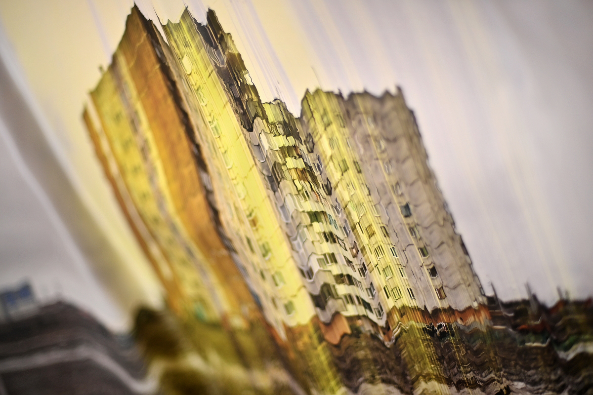 Наталья Лотарева, еще одна петербурженка, оставила после себя в Норильске «Геометрию тепла». Это и название ее проекта, и то чувство, которое вызывают текстильно-графические композиции «Там, где ночь выцветает» или сама «Геометрия тепла». Первые посетители выставки, а это были старшеклассники СШ №28, из понравившегося чаще других называли работы Натальи Лотаревой.