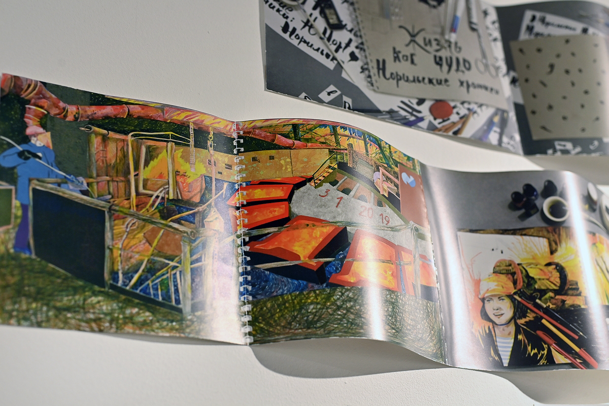 Из того же 2021 года – серия гуашей Марии Ивановой из Санкт-Петербурга под названием «Чувство места, или Карманный Норильск». Автор писала пейзажи северного города в традициях Общества любителей рисования и живописи, пропагандирующего живопись и рисование с натуры.