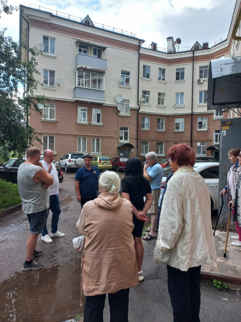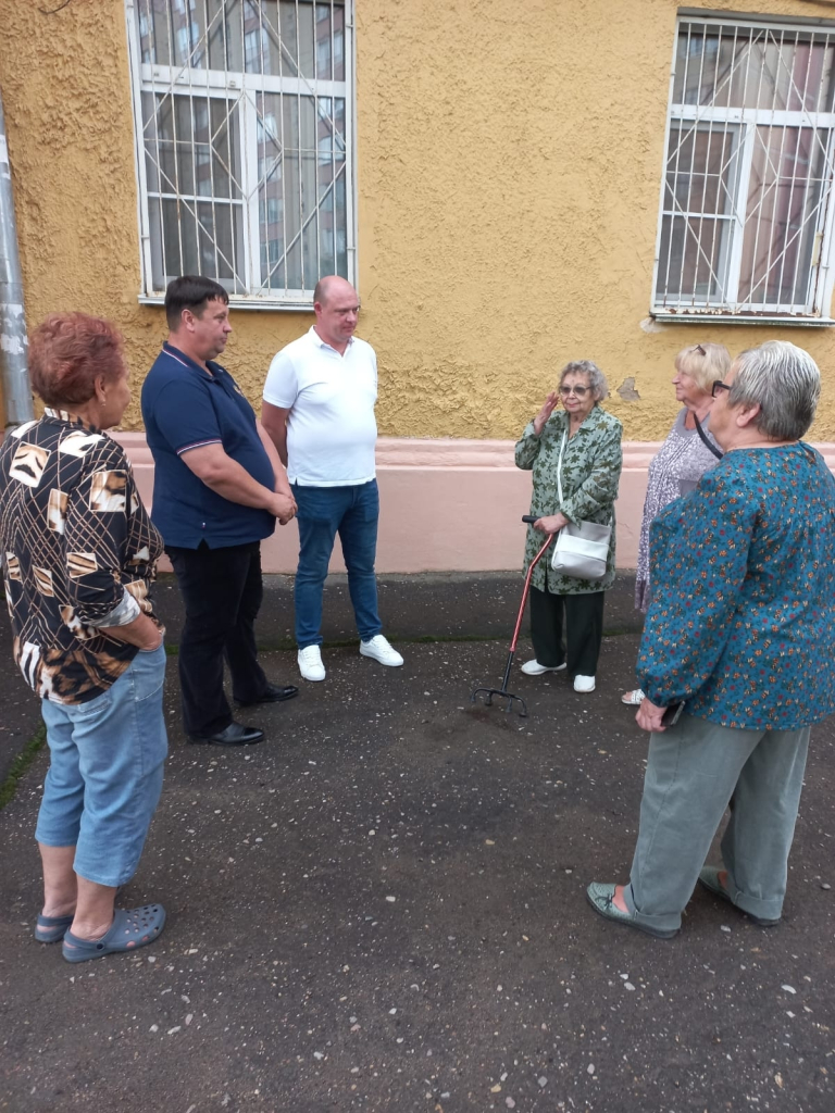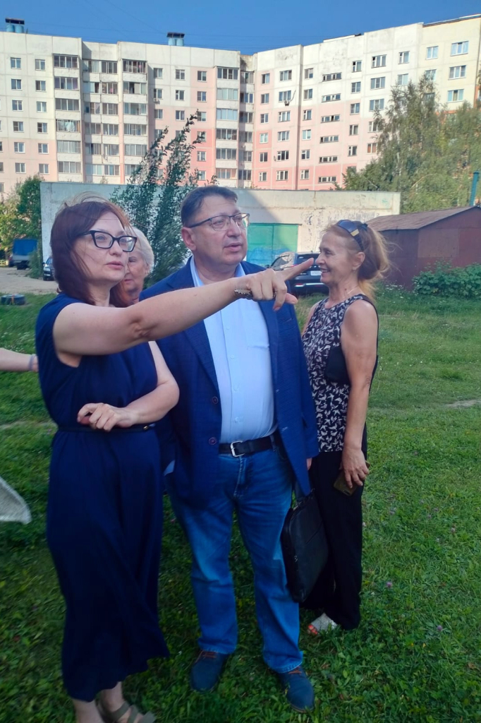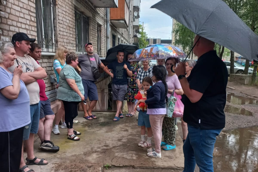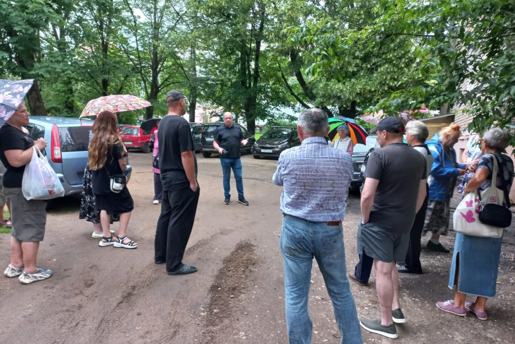 Михаил Радченков вместе со своей командой встретился со смолянами и представителями управляющей компании у дома 19а на улице Воробьева.
