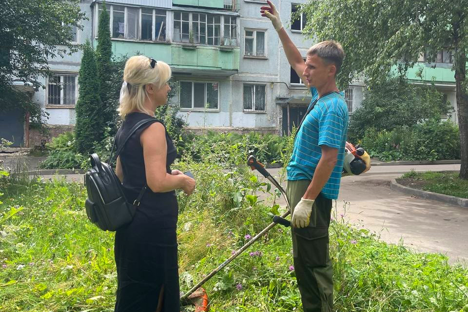 Дальше по плану у Елены Геннадьевны – контроль проведения покоса травы во дворах домов 15 и 17 на проспекте Строителей.