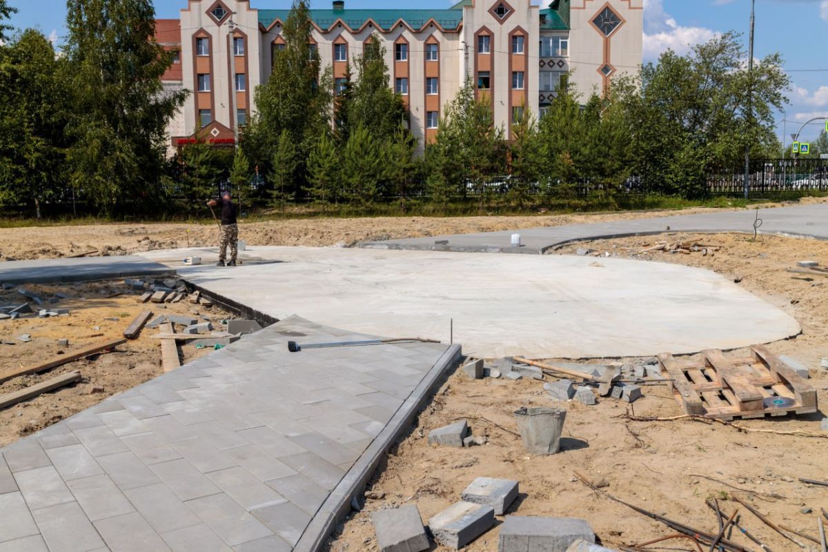 В Югорске благоустраивают центральный сквер «Северное сияние»: выполнены инженерные работы и подготовлена площадка под амфитеатр. В сквере создадут зоны отдыха, детские и образовательные площадки, искусственные водоёмы. Работы завершатся к октябрю 2025 года.
