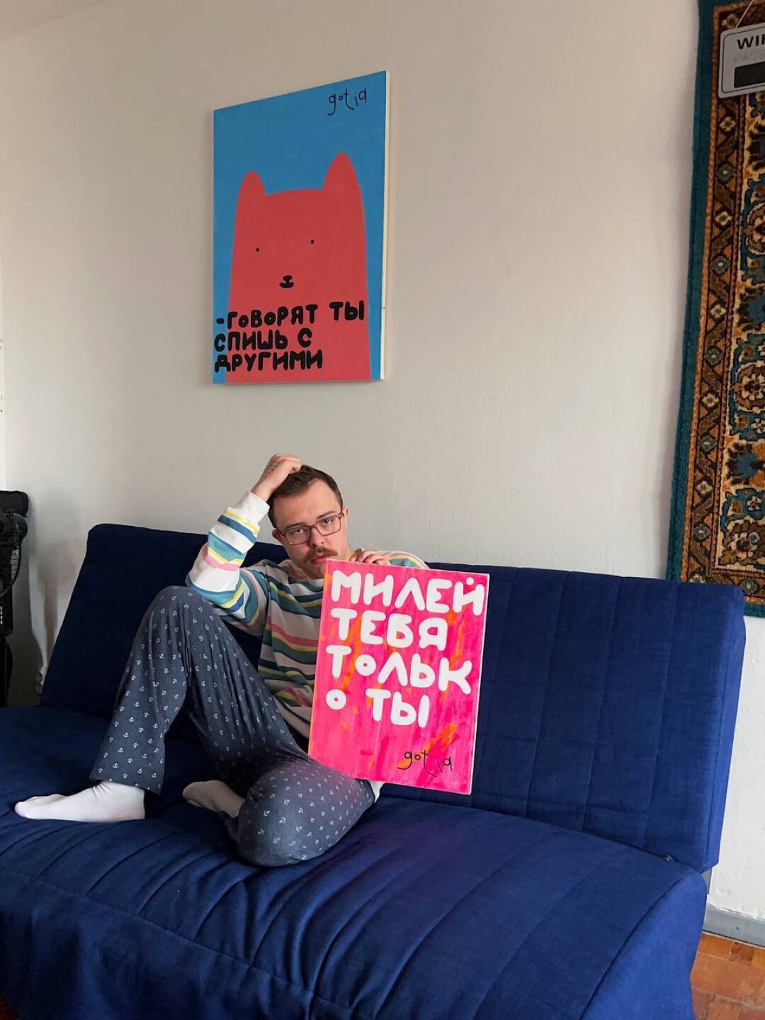 В «Рекорде» показывают собрание арт-сообщений абстракциониста и бытописца Gotia – молодой художник и экс-повар из Нижнего представил «компактную, но разностороннюю» экспозицию с 14 фирменными «говорящими» холстами-заявлениями, -воззваниями, -рассуждениями. Надо идти, потому что «Все должно быть в прикол».
