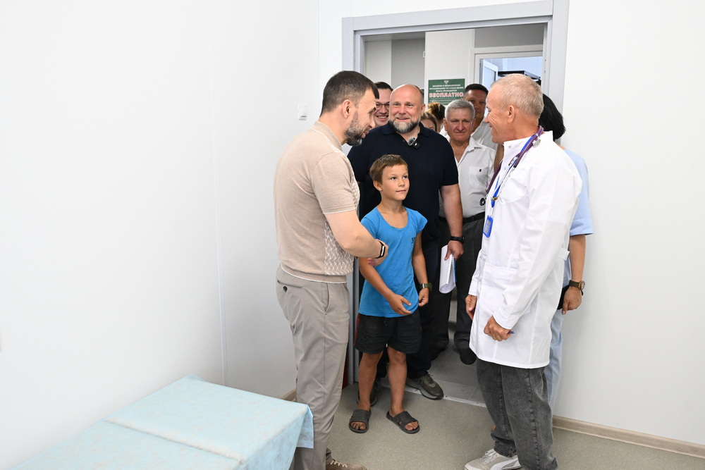 В субботу, 2 августа, Глава Донецкой Народной Республики Денис Пушилин принял участие в открытии новой модульной врачебной амбулатории в селе Кумачово Старобешевского муниципального округа.