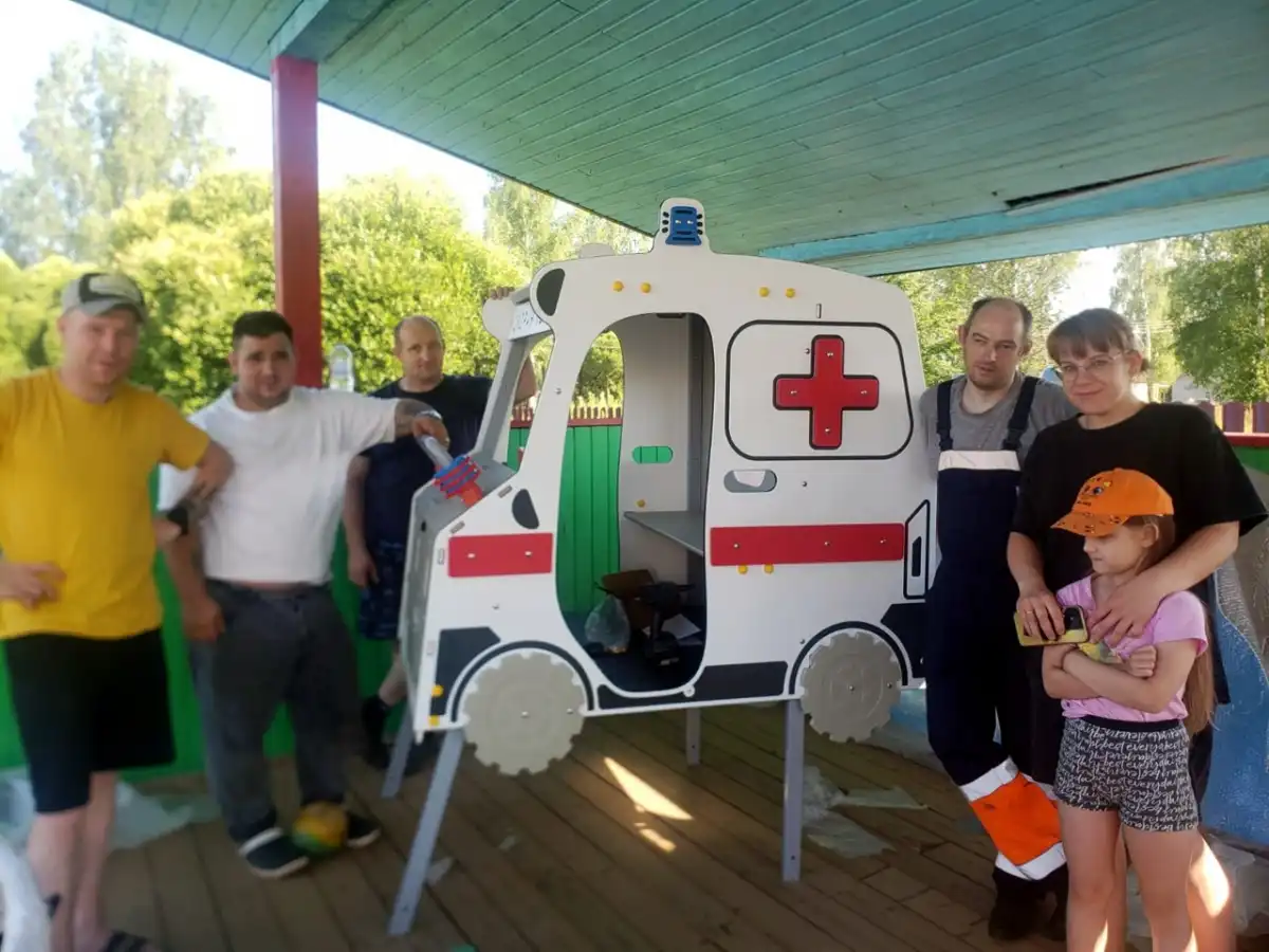 В усатновке новых игровых элементов на территории детского сада помогли родители подопечных дошкольного учреждения