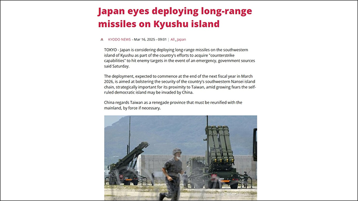 Развертывание ракет направлено на укрепление боеспособности юго-западной цепи островов Нансэй, которые имеют стратегическое значение из-за близости к Тайваню//Скриншот страницы сайта Kyodo