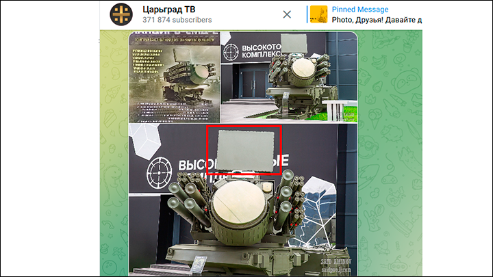 Боевой модуль "Панцирь-СМД-Е" с активной фазированной антенной решёткой (обведён красным квадратом). Скриншот: ТГ-канал "Царьград-ТВ"