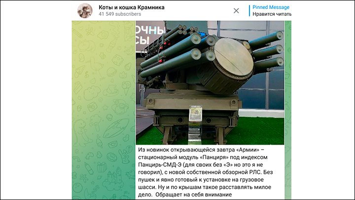 "По крышам расставлять такие комплексы — милое дело", — считает эксперт Илья Крамник. Скриншот с ТГ-канала "Коты и кошка Крамника"