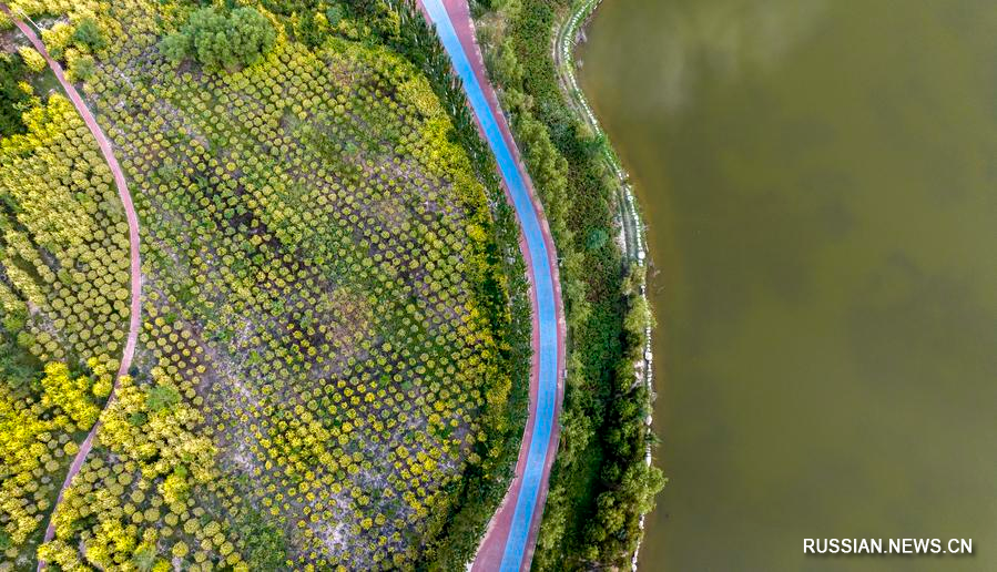 22 августа 2024 года, фитнес-трасса в зоне экотуризма вблизи озера Чжанцзыху в городе Иньчуань Нинся-Хуэйского автономного района /Северо-Западный Китай/. /Фото: Синьхуа/