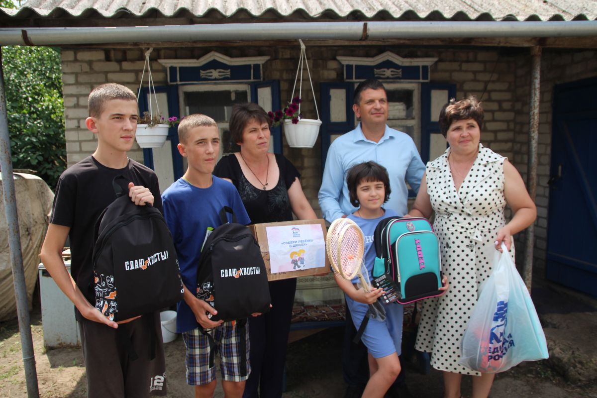 В Старобельске и селе Шульгинка Луганской Народной Республики активисты «Единой России» во главе с координатором партпроекта «Новая школа» Олегом Ковалем вручили рюкзаки со школьными принадлежностями, а также сладости и игрушки многодетным семьям.