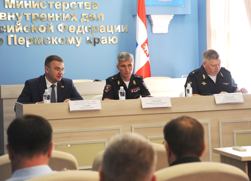 В ГУ МВД России по Пермскому краю состоялась рабочая встреча начальника ведомства генерал-майора полиции Владислава Толкунова с главой города Перми Эдуардом Сосниным по вопросу повышения уровня взаимодействия краевого Главка в сфере профилактики правонарушений на территории Перми. В мероприятии приняли участие руководители подразделений краевого Главка и заместитель главы администрации города Перми Алексей Туров.