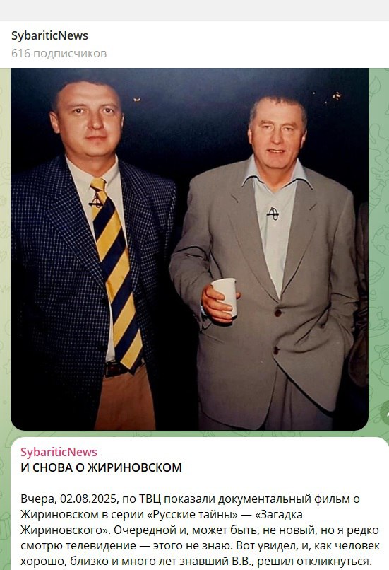 Появился также художник Никас Сафронов, который каждой бочке затычка. Пригласили некоего журналиста Андрея Тюняева, который нес что-то. При этом человек говорит непонятно что, будучи не знакомым с героем фильма. Я лично знал как самого Жириновского, так и его семью, детей, внуков. После выхода фильма я опубликовал в соцсетях с критикой фильма. За них меня благодарила его бывшая супруга Галина Александровна, с которой я поддерживаю связь.