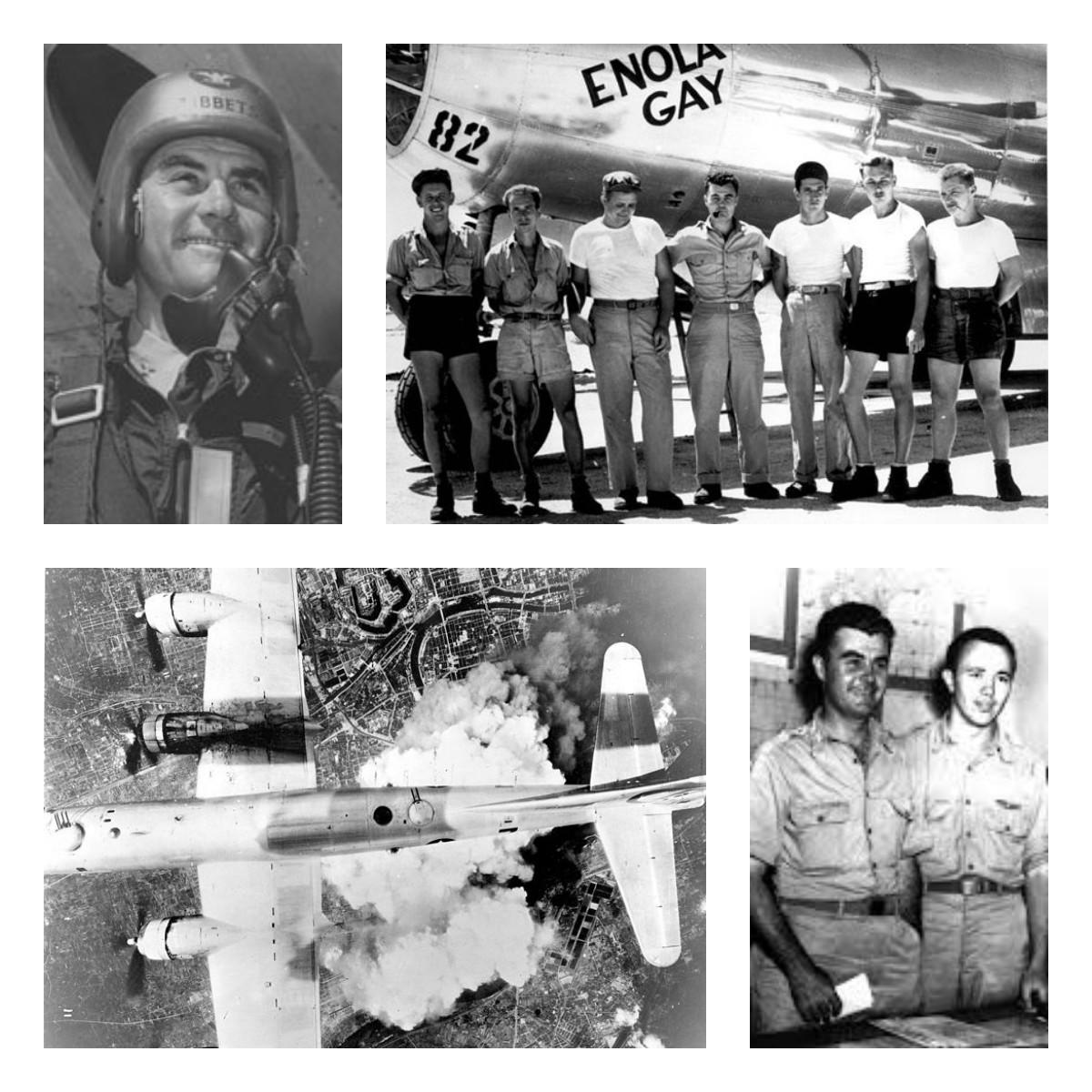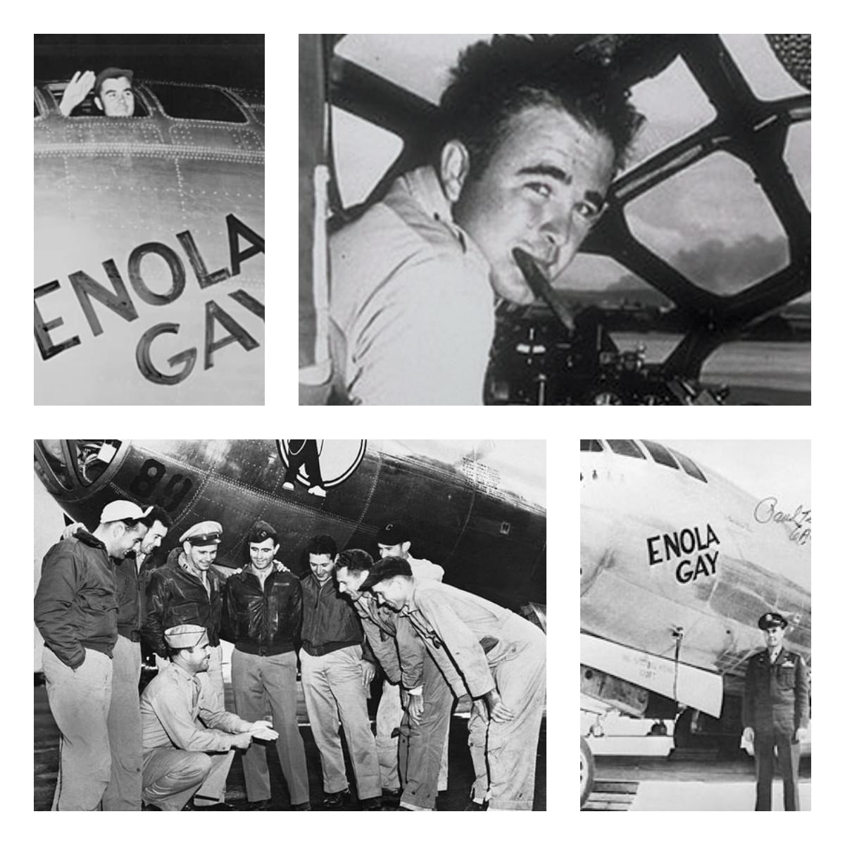 В экипаж «Boeing B-29 Enola Gay» во время бомбардировки 6 августа 1945 года входили двенадцать человек: командир экипажа полковник ВМС США Пол Уорфилд Тиббетс-младший, капитан Роберт Льюис, майор Томас Фереби, капитан Теодор Ван Кирк, лейтенант Джейкоб Безер, капитан Уильям Стерлинг Парсонс, младший лейтенант Моррис Джеппсон, сержант Джо Стиборик, сержант Роберт Карон, сержант Роберт Шумард, шифровальщик первого класса Ричард Нельсон, сержант Вэйн Дазенберрай. Единственным членом экипажа, который участвовал в обеих бомбардировках Хиросимы и Нагасаки, был специалист по противорадарной борьбе лейтенант Джейкоб Безер. Самым известным из участников атомных бомбардировок Японии стал Пол Уорфилд Тиббетс — командир «Boeing B-29 Enola Gay» и 509-го авиаполка. Пол Тиббетс, считался одним из лучших летчиков ВВС США в годы Второй Мировой войны и являлся личным пилотом президента США Дуайта Эйзенхауэра, в 1944 году был назначен командиром авиаполка, выполнявшего засекреченные полеты по перевозке компонентов атомных бомб, а затем получившего задание на нанесение атомного удара по Японии.