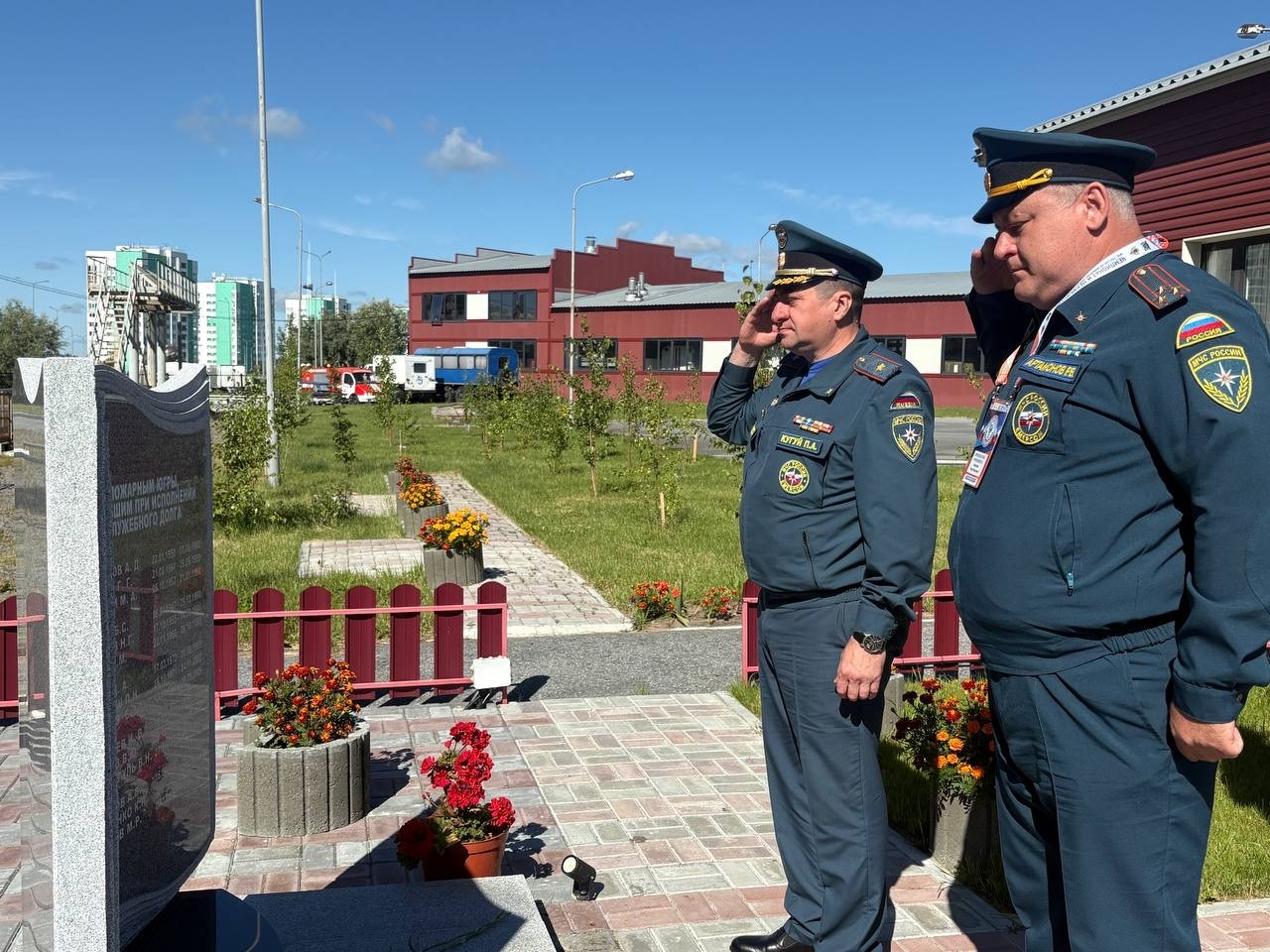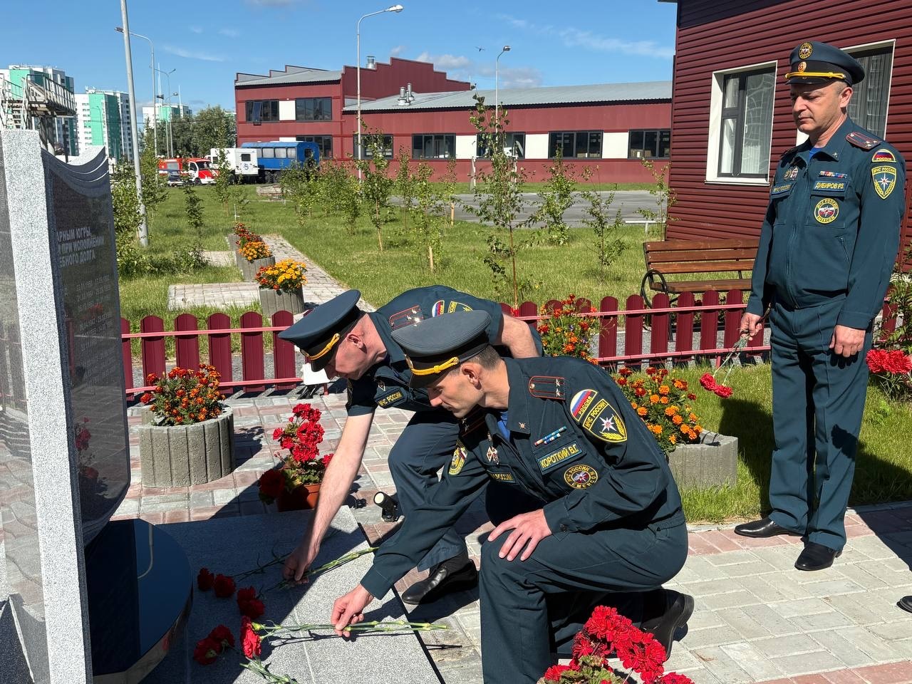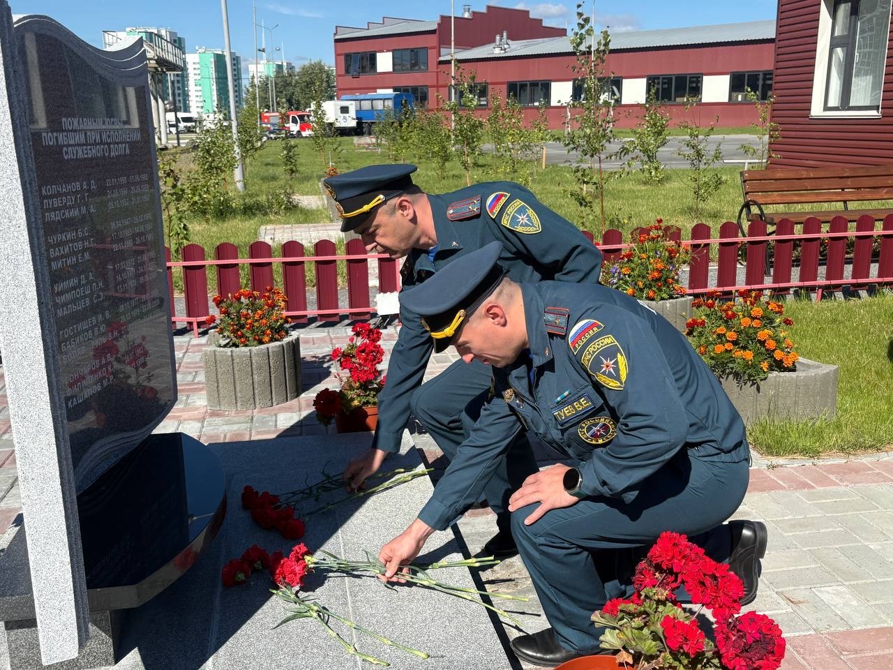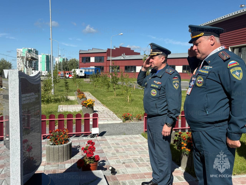 В рамках своего визита, руководители отдали дань уважения и почтили память тех, кто отдал свою жизнь, исполняя служебный долг. У мемориальной «Доски памяти», расположенной на территории 132 пожарно-спасательной части, была проведена церемония возложения цветов.