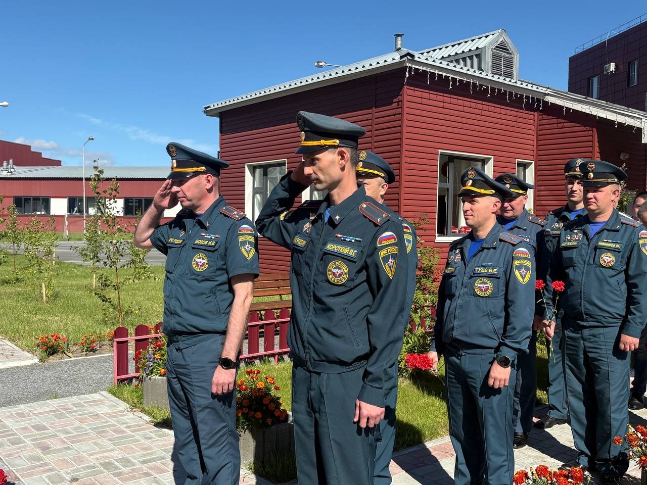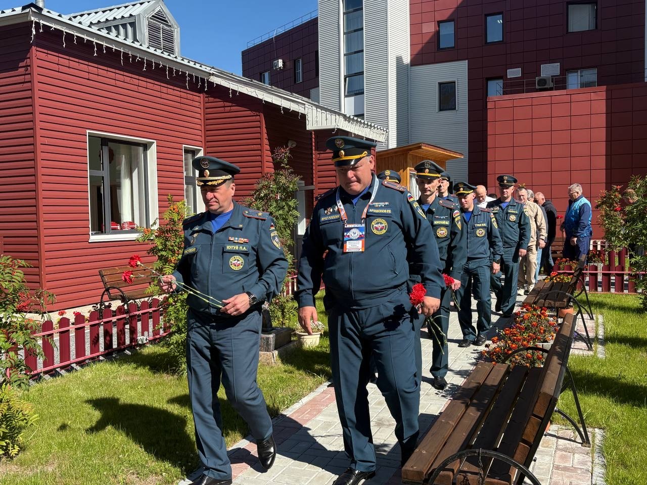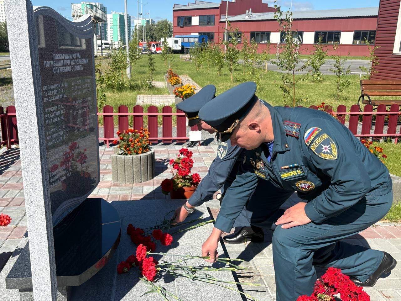 В рамках своего визита, руководители отдали дань уважения и почтили память тех, кто отдал свою жизнь, исполняя служебный долг. У мемориальной «Доски памяти», расположенной на территории 132 пожарно-спасательной части, была проведена церемония возложения цветов.