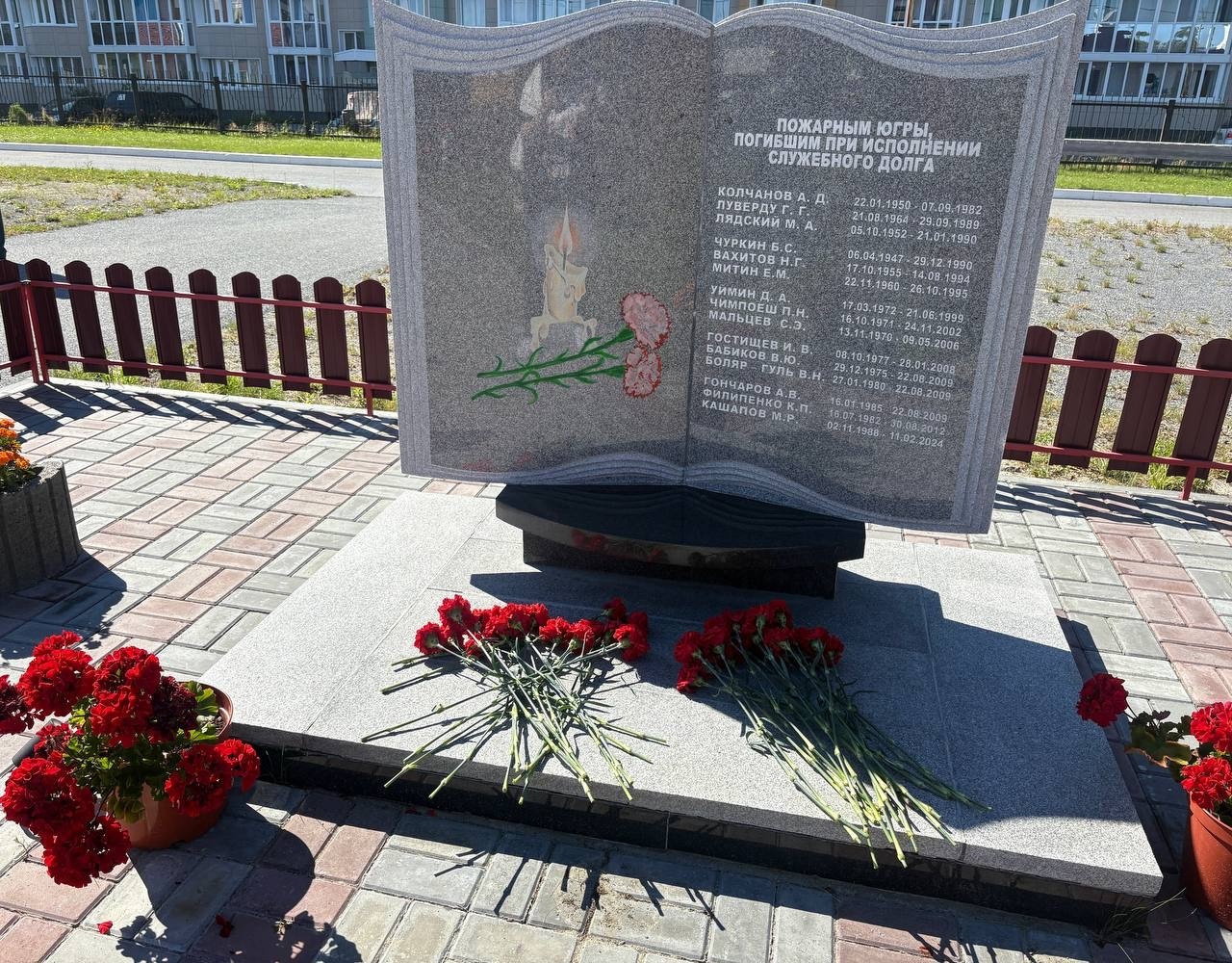 Эта скульптурная композиция, известная как «Книга памяти», является символом нерушимой связи поколений и напоминанием о самоотверженности сотрудников и работников пожарно-спасательных подразделений Югры. Она посвящена всем тем, кто героически погиб в разные годы при исполнении своих профессиональных обязанностей, защищая жизни и имущество граждан.