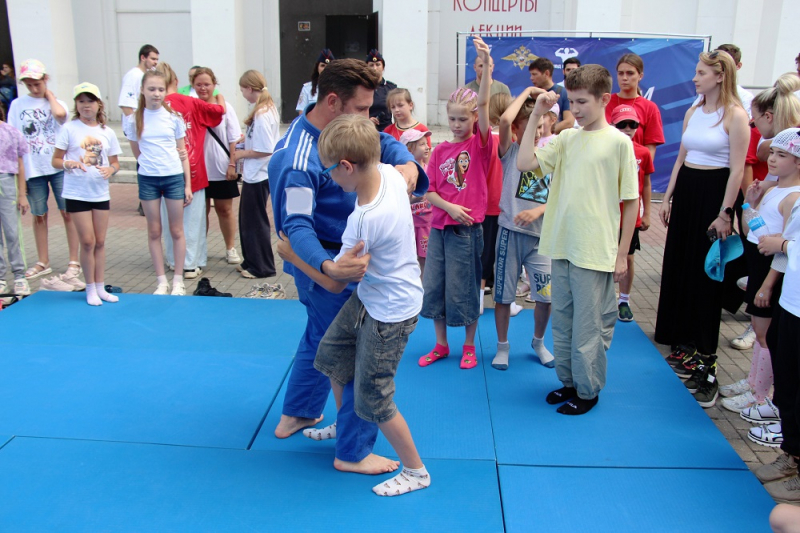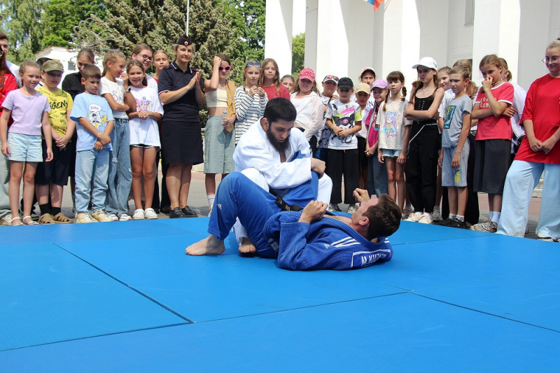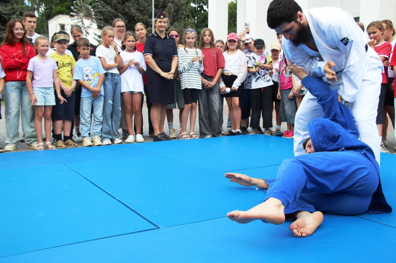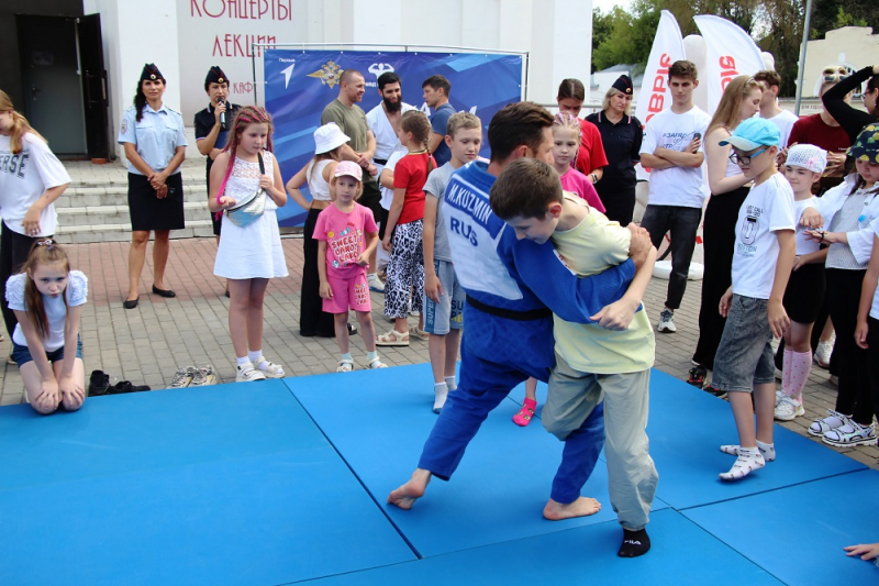 «Зарядка со стражем порядка» началась, как и положено, с физической разминки. Под бодрую музыку юные горожане выполнили классический комплекс упражнений, позволяющий подготовиться к более серьезным нагрузкам. После чего все внимание было сосредоточено на профессиональных мастер-классах. Демонстрируя высокий уровень физической подготовки, полицейские предложили желающим не оставаться в стороне и принять участие. Нисколько не сомневаясь, подрастающее поколение попробовали свои силы на татами.