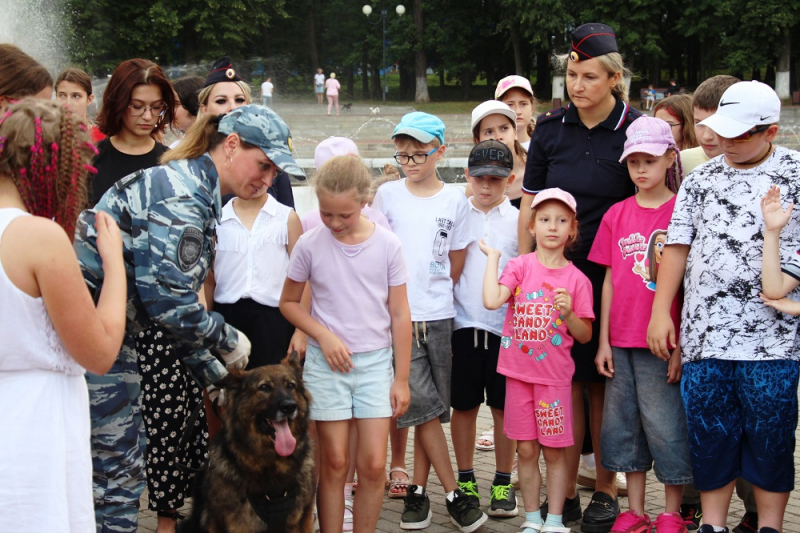 Приятным сюрпризом для участников акции стали показательные выступления полицейских-кинологов. Ребята с неподдельным интересом наблюдали за служебными собаками, которые четко выполняли команды кинологов. Особый восторг, конечно, вызвала возможность погладить четвероногих напарников полицейских и сделать с ними памятные кадры.