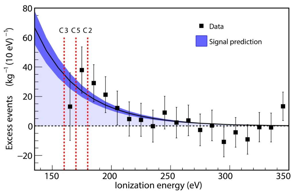 Детектор CONUS+ расположен всего в 20,7 метра от активной зоны реактора (см. рисунок 1), где плотность потока нейтрино превышает 10 триллионов частиц на квадратный сантиметр в секунду. В ходе наблюдений, продолжавшихся 119 дней с осени 2023 по лето 2024 года, исследователям удалось выделить 395±106 избыточных событий, соответствующих нейтринным взаимодействиям после исключения фоновых сигналов (см. рисунок 2). Эти данные хорошо согласуются с теоретическими моделями, учитывая статистическую погрешность.