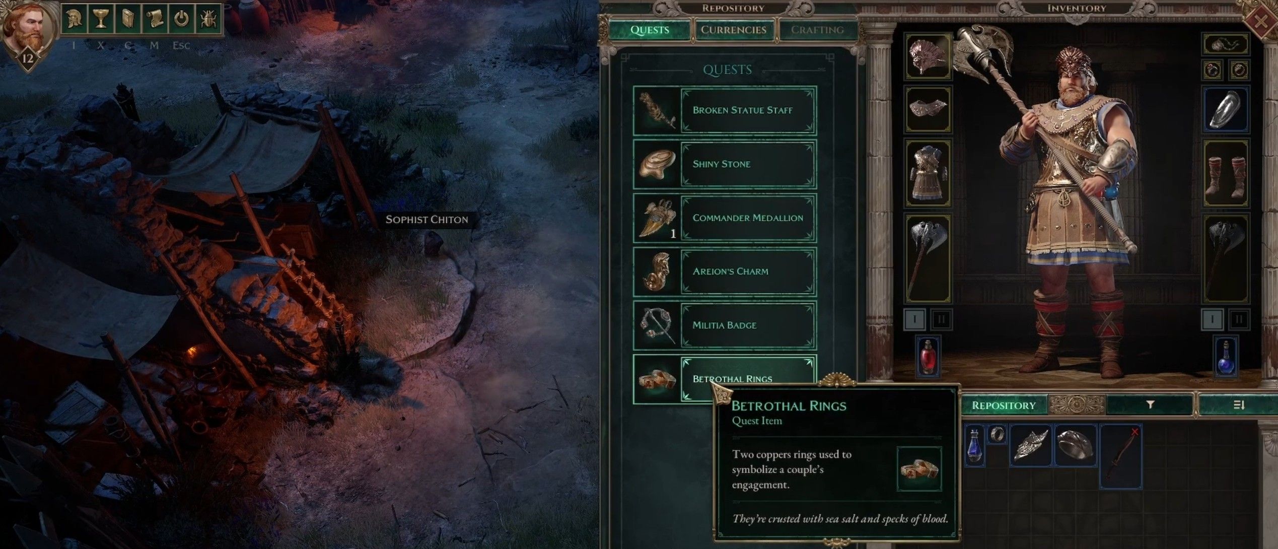 Titan Quest II — продолжение знаменитой экшен-RPG, вышедшей в далеком 2006 году. Как и первая часть, сиквел представляет собой этакий классический диаблоид, но в крайне любопытном сеттинге, основанном на греческой мифологии. Любой игре жанра свойственно огромное количество разнообразного лута: предметов снаряжения, полезных расходников и не только. Некоторые из найденных вещей, как водится, квестовые. В Titan Quest II такие предметы отмечены темно-фиолетовым цветом. Нередко они нужны для решения тех или иных загадок — например, могут быть магическими ключами. Но зачастую предметы необходимо попросту передать какому-то персонажу. Однако понять, кто именно ищет предмет, не всегда получается с ходу. Так, на востоке локации «Затопленные угодья» можно обнаружить странные обручальные кольца. При их нахождении не запускается тот или иной квест, поэтому о владельцах остается гадать лишь по описанию предмета. Рассказываем, где найти и кому передать обручальные кольца в Titan Quest II, а также какую награду за это можно получить.
