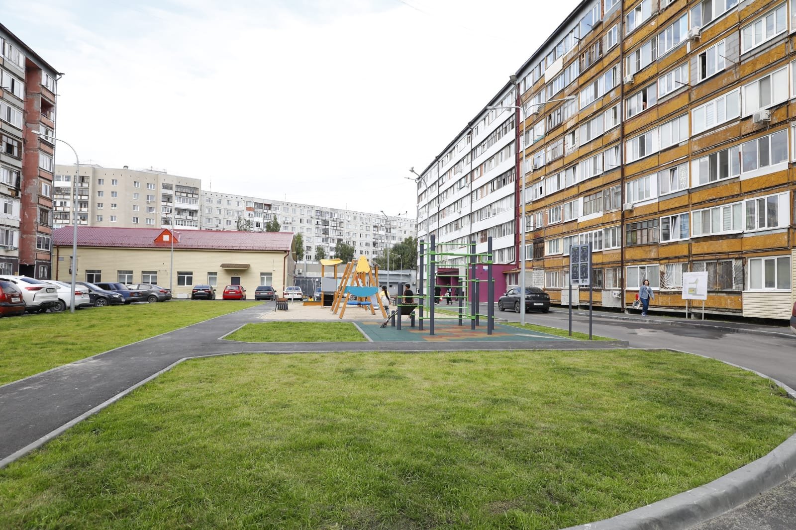 Эти участки значительно преобразились. Во дворах установили турники и площадку для панна-футбола. Появились контейнерные площадки, скамейки и урны. Заменили наружное освещение, заасфальтировали проезды и тротуары. Привели в порядок газоны, отремонтировали крыльца и отмостки.