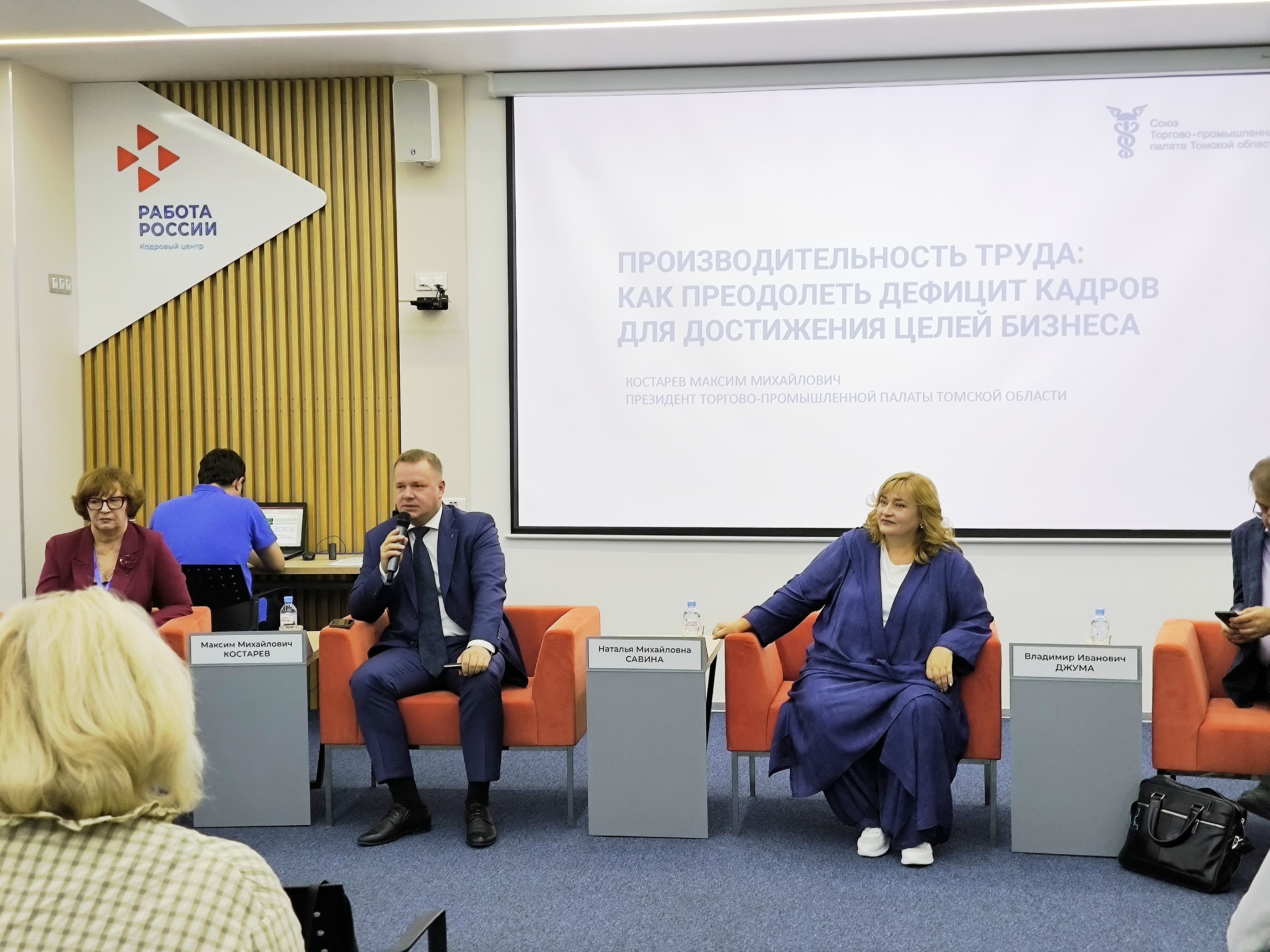 Президент ТПП Томской области Максим Костарев в своем выступлении отметил положительный опыт внедрения бережливых технологий на томских предприятиях базовых несырьевых отраслей экономики. Он отметил, что реализация нацпроекта позволила снизить потребность экономики страны в кадрах на 130 тысяч человек, а по оценке Минэкономразвития, по нацпроекту «Эффективная и конкурентная экономика» можно будет закрыть 10% от кадрового дефицита. Участие в проекте позволяет предприятиям повышают загрузку оборудования, сокращать простои производства и в результате находить дополнительные внутренние трудовые резервы, вовлекая персонал в культуру непрерывных улучшений.