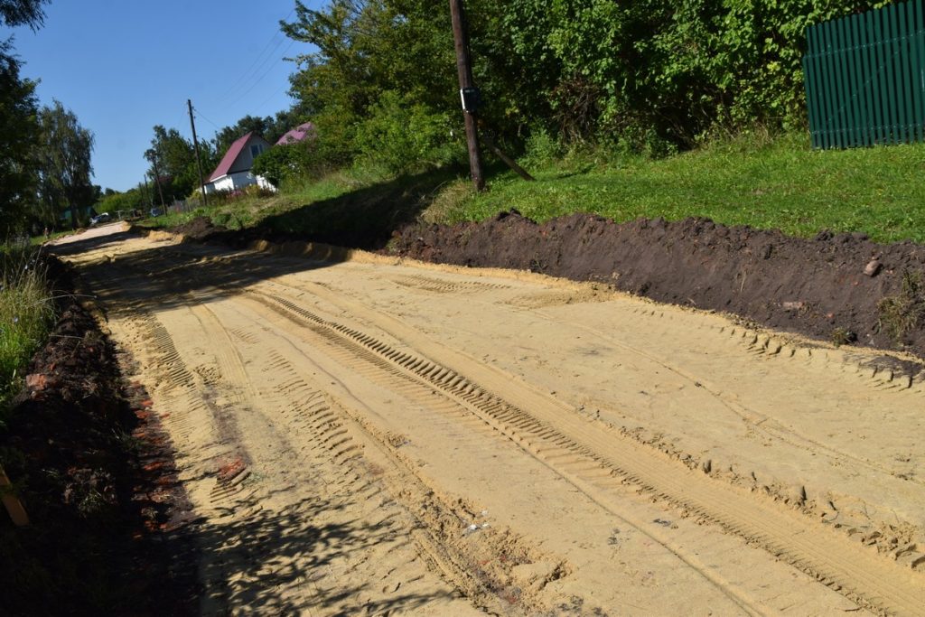 В селе Песочня начался второй этап строительства дороги на улице Советской. Раньше она была практически непроездная – как чуть пройдет дождь, проехать по ней можно было лишь на уазике или тракторе. Жители села много раз обращались в администрацию округа с просьбой построить дорогу.