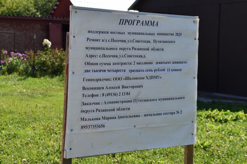 В 2024 году песочинцы решили участвовать в программе поддержки местных инициатив. Первый этап – строительство щебеночной дороги на части улицы – завершили в августе того же года. Сейчас рабочие Шиловского ХДПМУ строят оставшуюся часть дороги на улице Советской. Общая сумма контракта – 2 992 437 рублей. Протяженность дороги на улице – 945 метров. Участие в программе стало возможным благодаря поддержке местного сельскохозяйственного предприятия ООО «Родина».