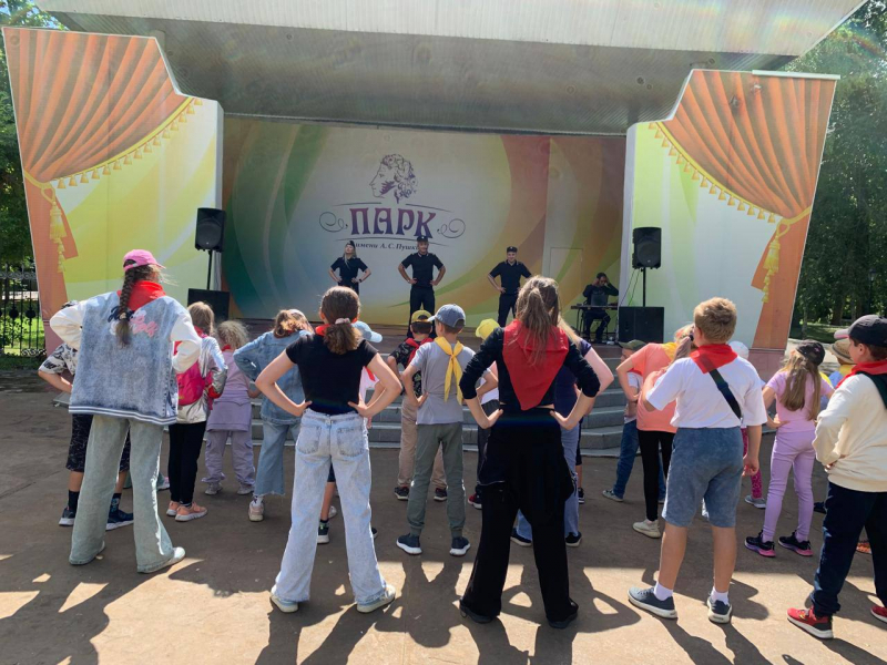 Сегодня в Саранске в городском парке им. А.С. Пушкина по инициативе Культурного центра МВД по Республике Мордовия члены Совета молодых сотрудников провели зарядку для юных граждан.