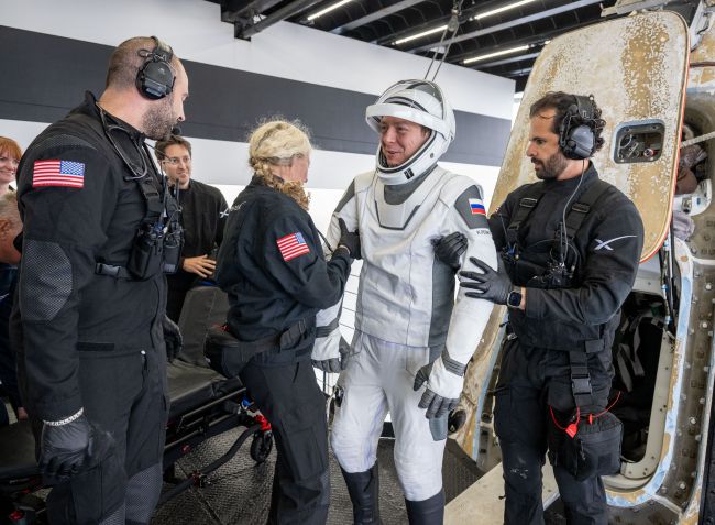 Приводнение экипажа прошло штатно. Через 36 минут боковой люк возвращаемого аппарата космического корабля Dragon, установленного на корме поисково-спасательного корабля был открыт. Спустя 16 минут, Кирилла Пескова эвакуировали на борт корабля-спасателя.