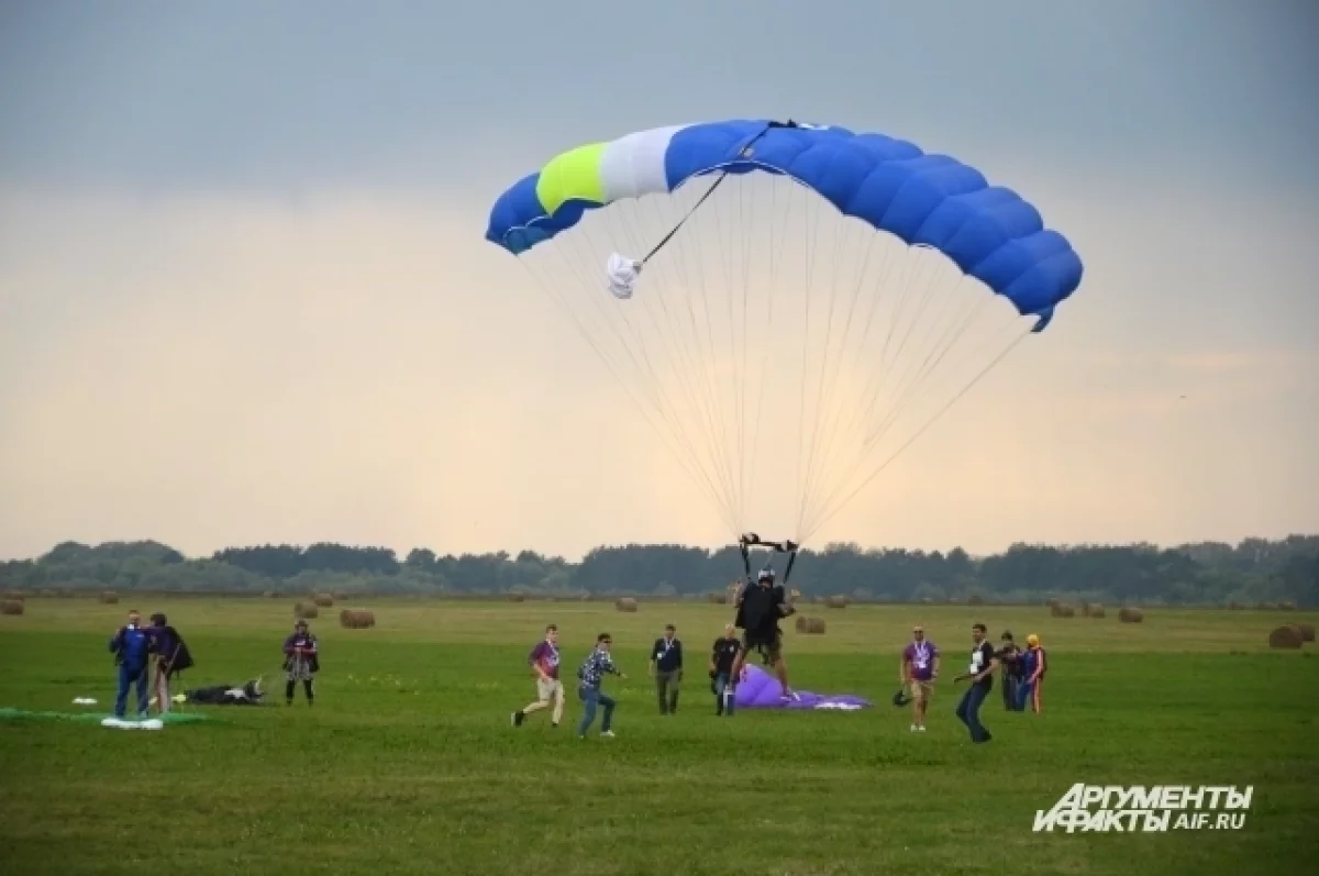 14:00–16:00 — показательные пролёты спортсменов-парашютистов в направлении «купольное пилотирование».