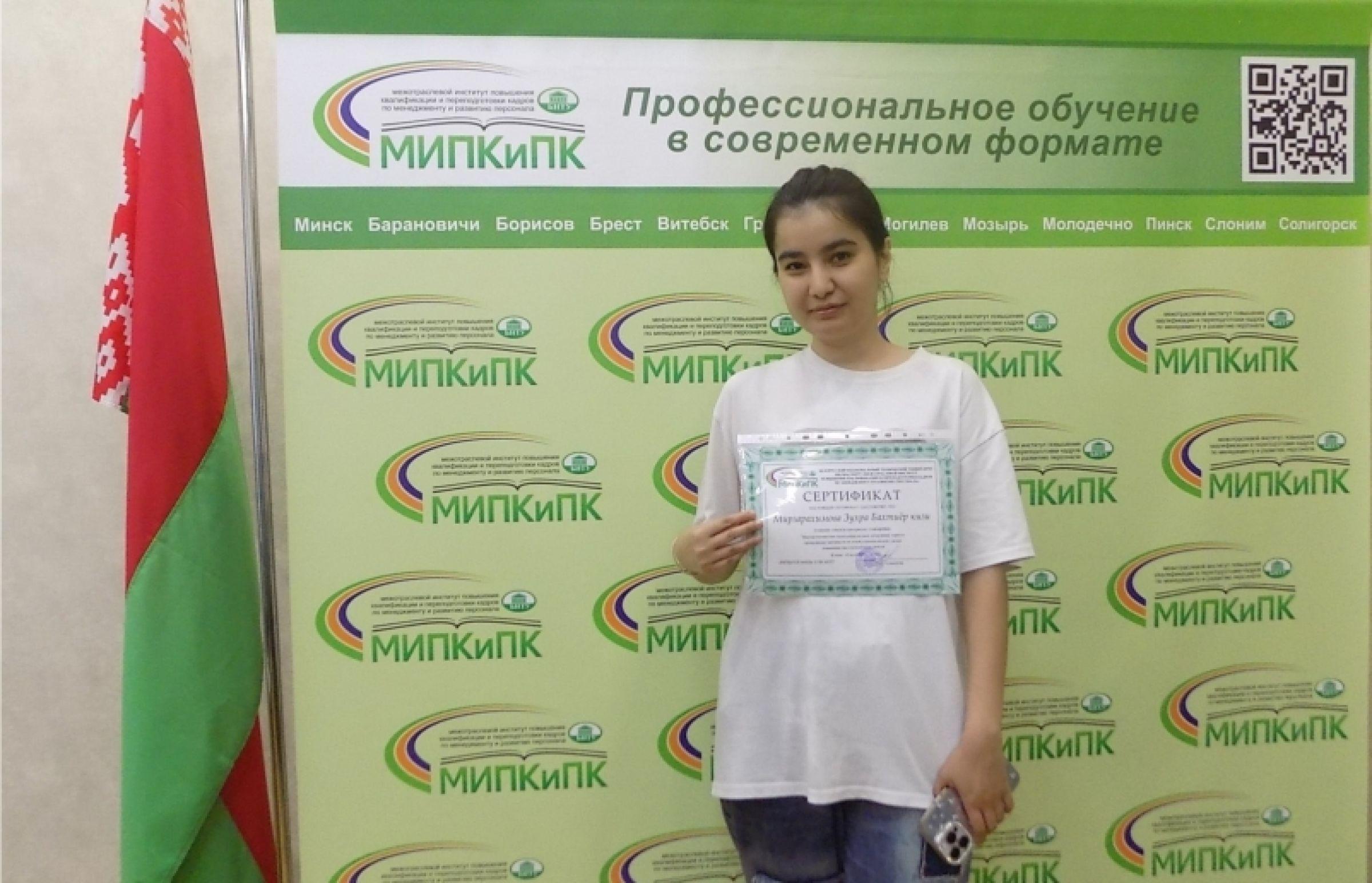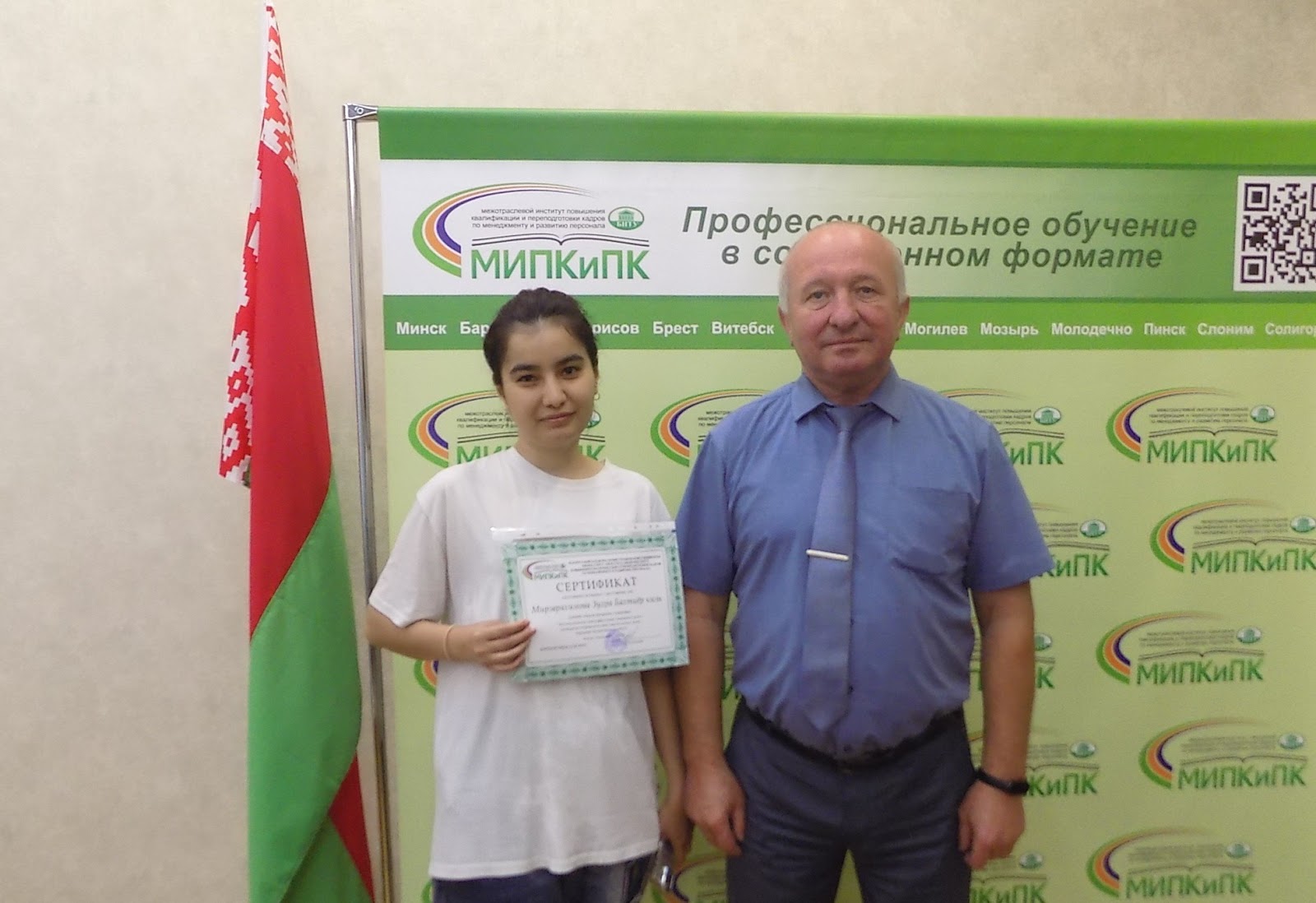 Зухра Бахтиер кизи успешно завершила образовательную программу, прошла итоговую аттестацию и получила именной сертификат, который вручил директор МИПК и ПК БНТУНиколай Михайлович Селивончик.