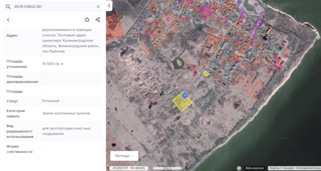 По данным RUGRAD, речь идет о сбросе в Куршский залив в юго-восточной части Рыбачьего в границах участка 39:05:020203:25 , находящегося в госсобственности. При этом сточные воды вытекают из неработающих очистных сооружений на участке с номером 39:05:020204:191 площадью 1 га. Массив предназначается конкретно «для эксплуатации очистных сооружений» и аналогично находится в госсобственности. Очистные в поселках Лесное и Рыбачий на Куршской косе на протяжении многих лет не работают должным образом и не выполняют свою функцию. Все неочищенные воды безостановочно попадают в Куршский залив и являются причиной его загрязнения.
