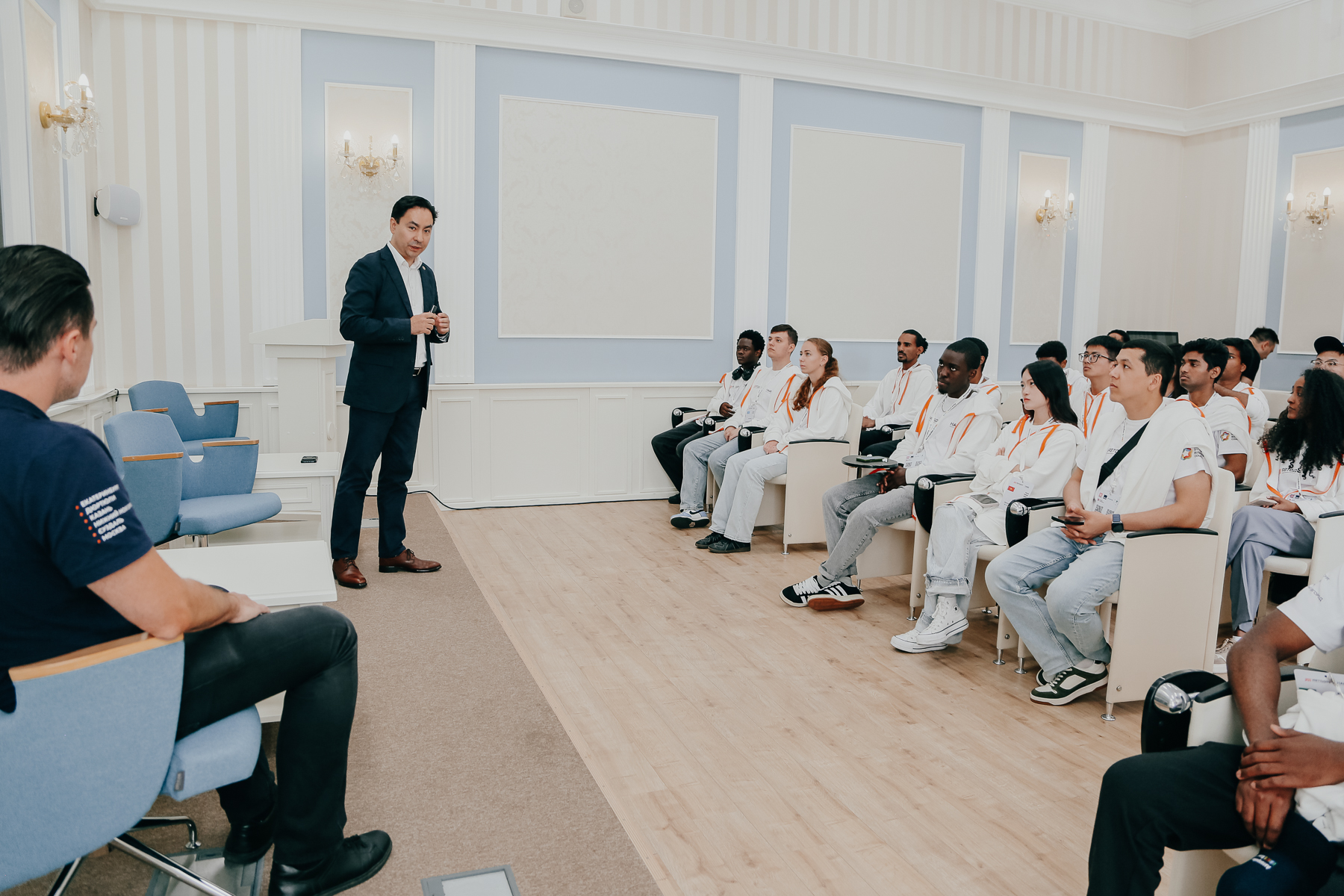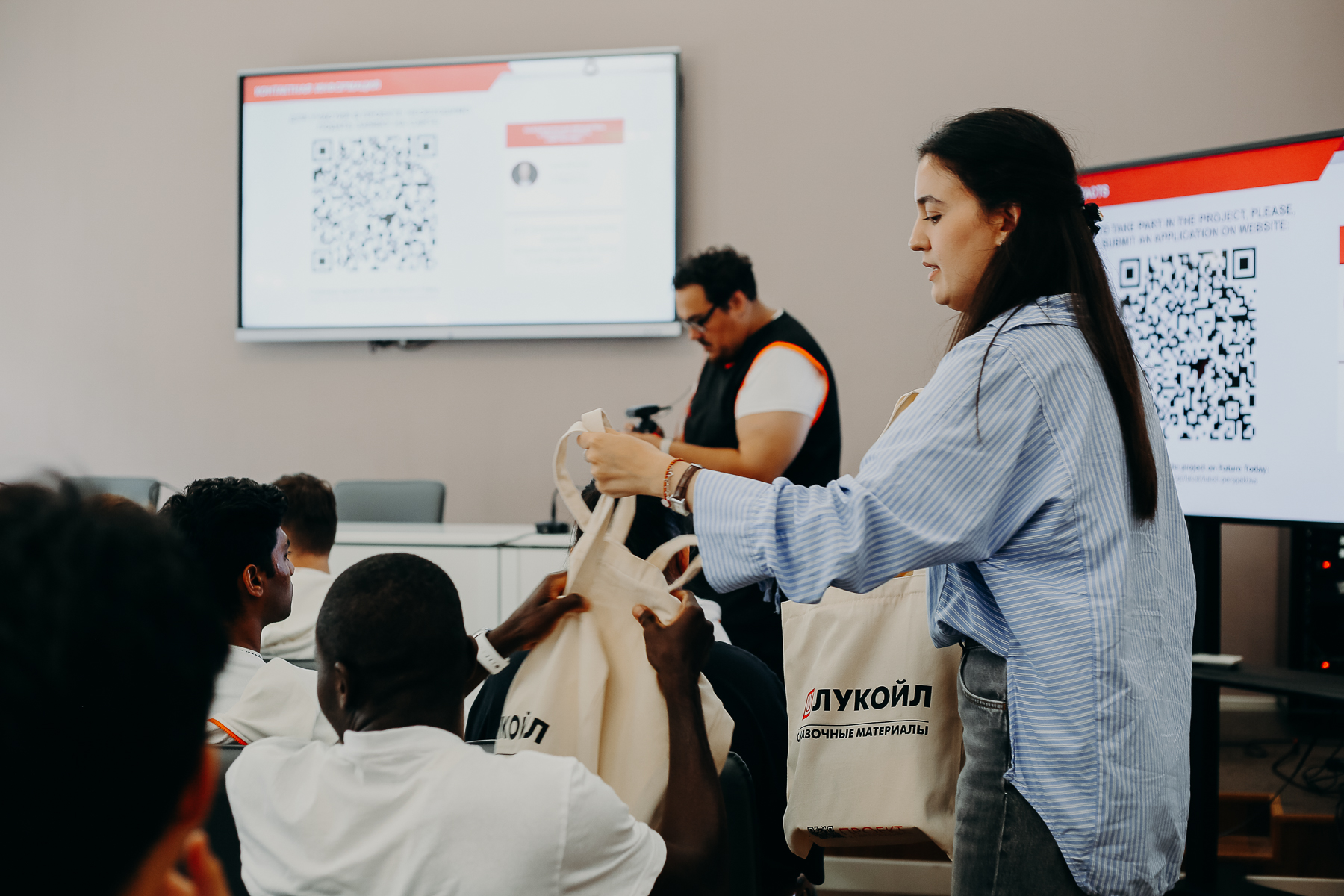 Визит в КФУ продолжился посещением подготовительного факультета для иностранных учащихся. Здесь для ребят прошла презентация проекта «Перспектива», вручение подарков от компании «ЛУКОЙЛ» – генерального партнера автопробега. Также состоялся практикум для студентов от Центра компетенций Минстроя России на тему «Создать интернациональный город будущего». Под руководством экспертов обучающиеся рассмотрели тренды в проектировании новых городских пространств, современные технологии и представили город будущего, где каждый чувствует себя счастливым.