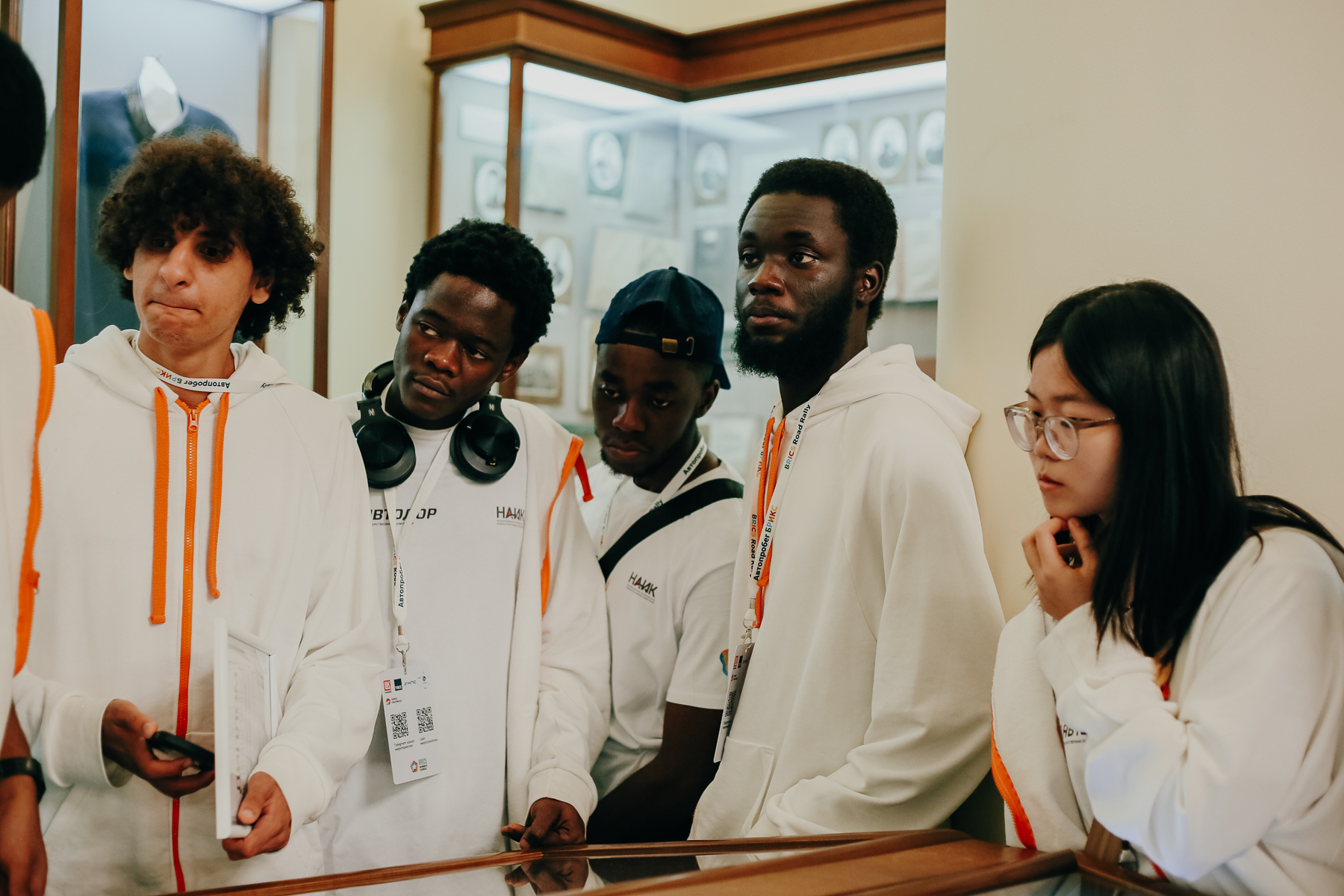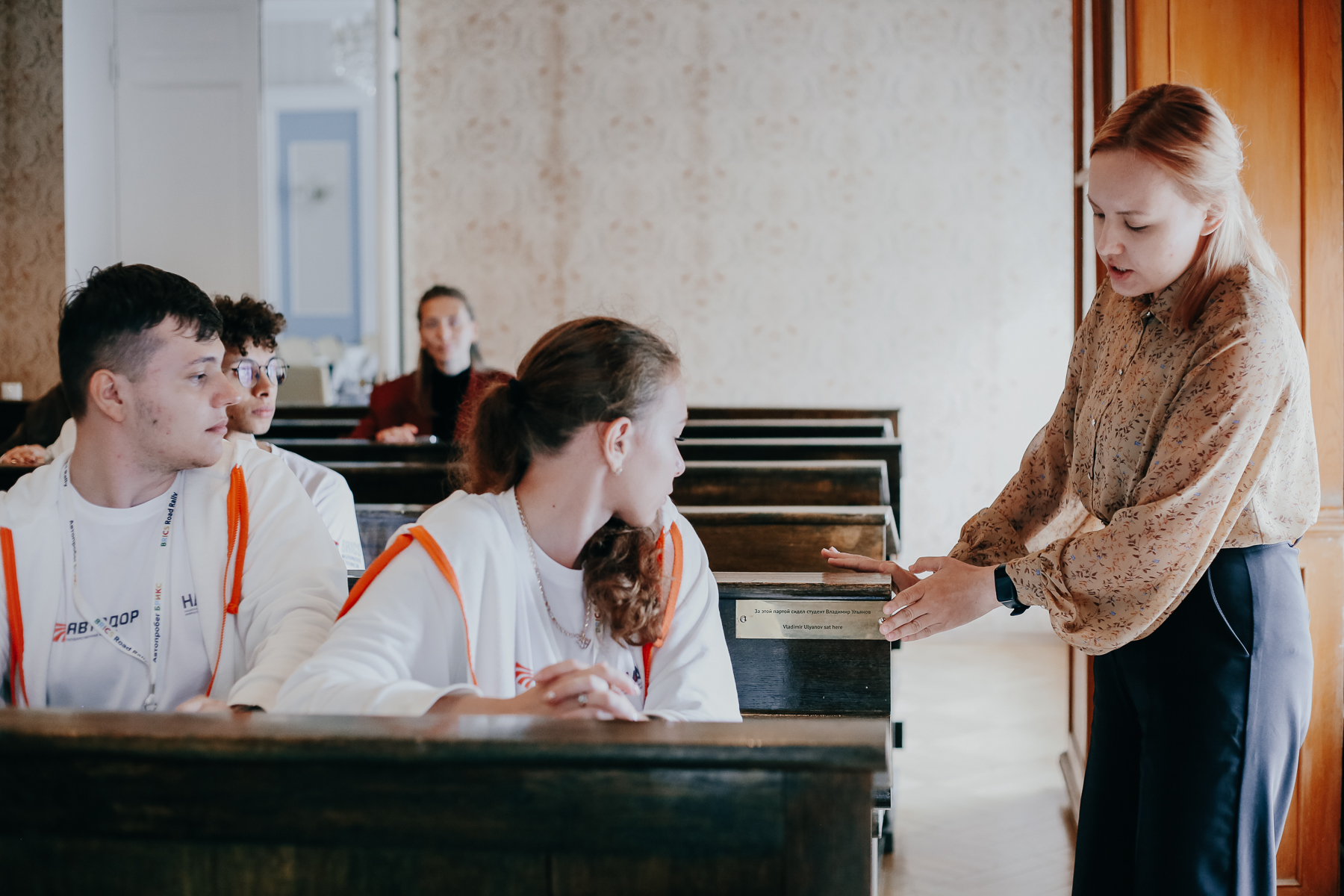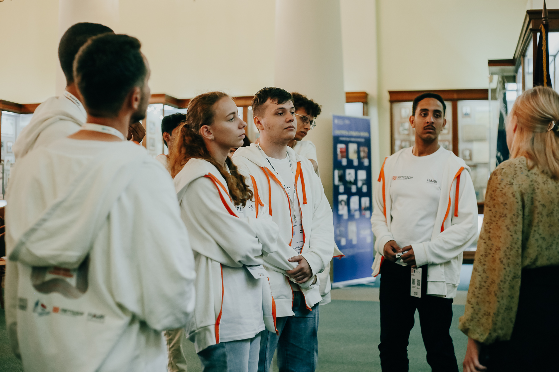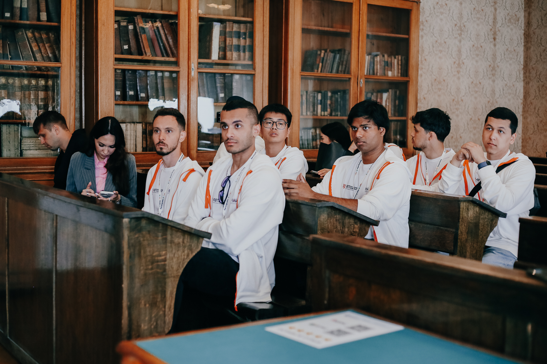 В Казанском университете для гостей была организована обширная программа. Визит начался с посещения главного здания вуза. Здесь для них провели экскурсию в знаковые места – Императорский зал, знаменитую Ленинскую аудиторию – мемориальную аудиторию № 7 юридического факультета, Музей истории Казанского университета. Затем со студентами встретился проректор по внешним связям КФУ Тимирхан Алишев.
