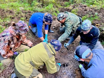 В ходе десятидневной экспедиции в Питкярантском районе Карелии поисковые отряды Кузбасса подняли останки четырех бойцов Красной армии. Рядом с ними обнаружены личные вещи: солдатская ложка, фрагменты обмундирования, элементы снаряжения и боеприпасы. Особый интерес представляет гильза с бумажным вкладышем, однако текст на нем не поддается прочтению из-за плохой сохранности.