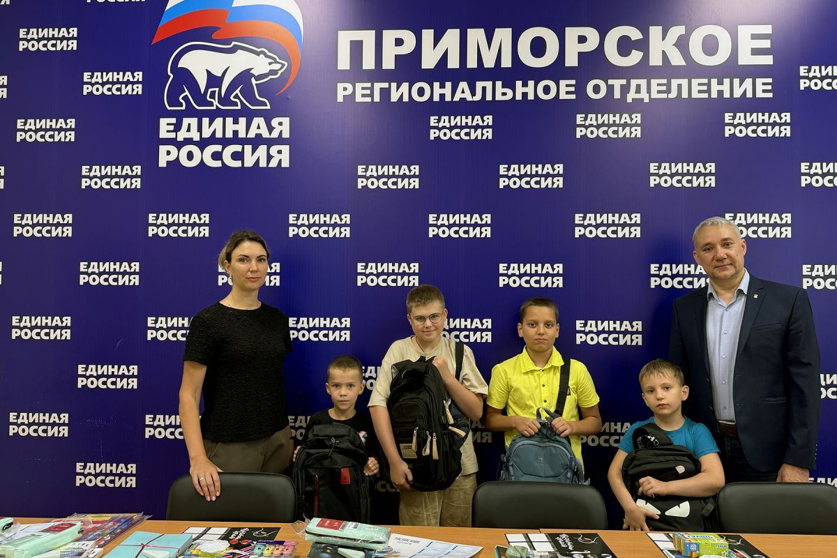 В Приморье член регионального политсовета «Единой России» Евгений Назаренко передал школьные рюкзаки с необходимыми принадлежностями ученикам начальных и 6–8-х классов. Помощь оказали детям военнослужащих, многодетной семье и родителю, воспитывающему ребёнка с нарушением слуха.