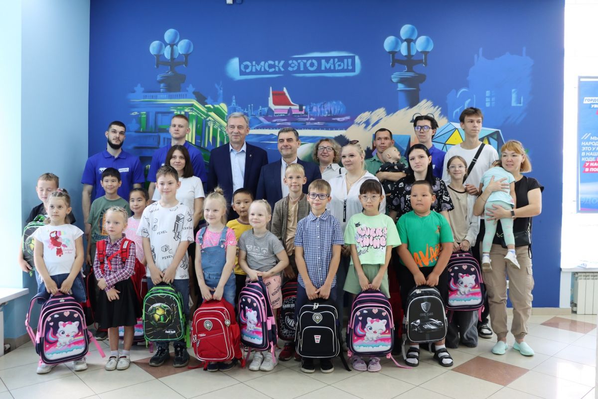 Председатель заксобрания Омской области Александр Артёмов и первый замсекретаря реготделения партии Вадим Бережной вручили рюкзаки детям из многодетных семей и семей участников СВО.
