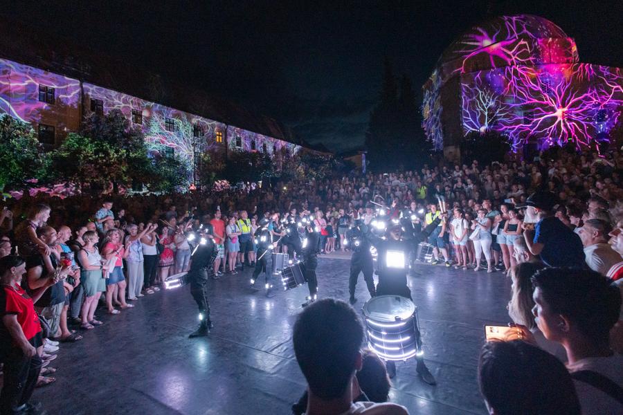 4 июля, Печ, Венгрия. Люди наслаждаются световым представлением во время фестиваля света. /Фото: Синьхуа/