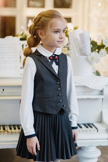 Элегантный и строгий костюм создаст гармоничный образ, который наверняка произведет впечатление на одноклассников и учителей. Вы можете выбрать комбинации, такие как пиджак с брюками, пиджак с юбкой, жилет с брюками или жилет с юбкой. Все эти варианты будут выглядеть стильно, но стоит избегать слишком приталенных моделей, которые уже не в тренде.