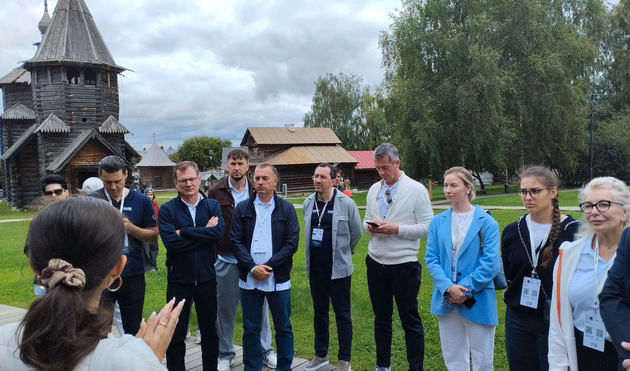 В зале суздальского отеля собрались гости из Бразилии, Турции, Индии, Вьетнама, Китая, Египта, Чили, Южно-Африканской Республики, Нигерии, Перу, Беларуси и России, которые отправились по маршруту, пролегающему через наш регион.
