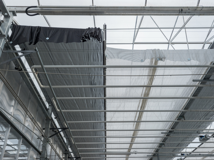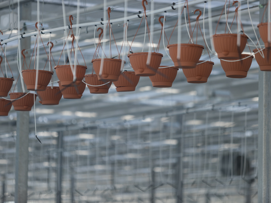 Среди ключевых новшеств - система зашторивания, регулирующая уровень освещения и защищающая растения от прямых солнечных лучей, а жителей по-соседству – от излишнего освещения. Комплекс оснащен шестью различными системами орошения, обеспечивающими многоуровневый полив: это верхний капельный полив для дозированной подачи раствора, капельный полив на столах для тюльпанов, дождевание для рассады, система испарительного увлажнения («туман») для поддержания влажности и снижения температуры, а также основная система «прилив-отлив», которая обеспечивает равномерное питание и многократное использование раствора для однолетних цветов. Также полностью автоматизировано и проветривание.