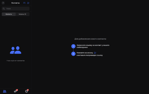 Недостатки: поскольку аккаунт не привязан к номеру телефону, то список контактов придется пополнять заново. Чтобы добавить нового человека в контакты, нужно сначала отправить ему ссылку, затем принять его приглашение и только потом получится позвонить с помощью аудио и видео.